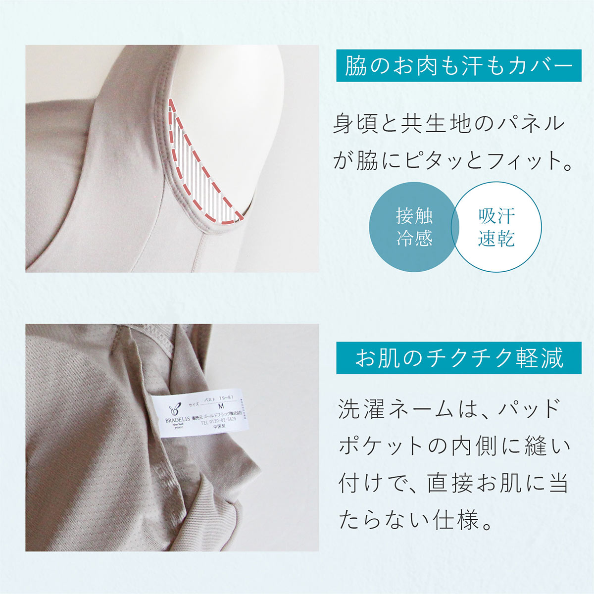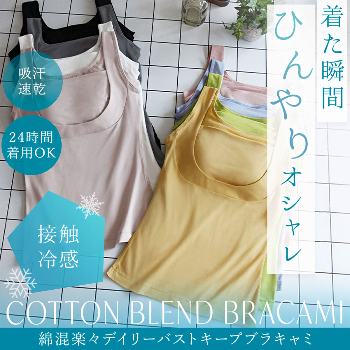 ブラデリス 24時間OK 綿混楽々デイリー バストキープ ブラキャミ S-5L ノンワイヤー ブラトップ 吸汗速乾 ナイトブラ 加齢臭