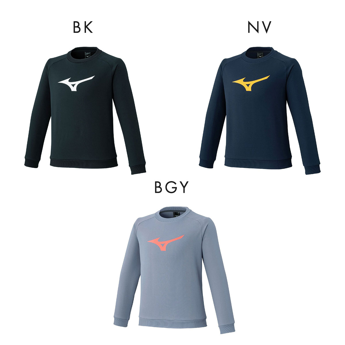 フロントのビッグロゴがポイントのキッズ用スウェットシャツ。裏起毛ではなく、裏毛仕様なので、秋から春先まで長い期間お使いいただけます。部活やスポーツシーンだけでなく、ルームウェアとしてもおすすめです。