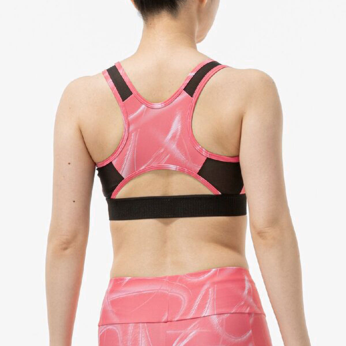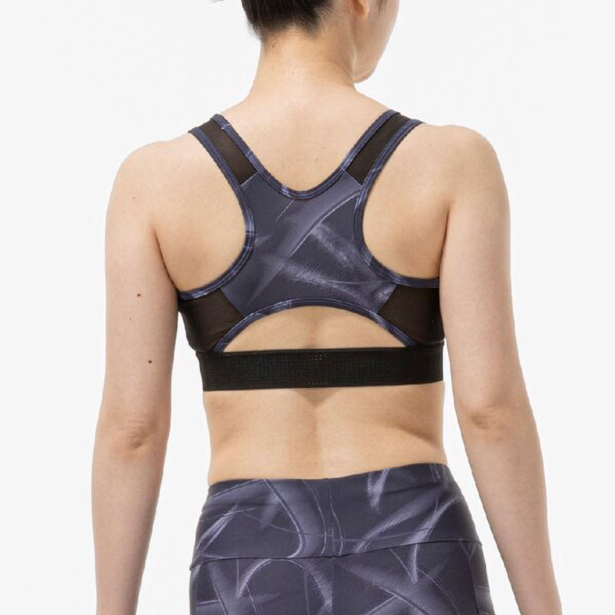 汗をかいてムレやすい背面とアンダーバストはメッシュ仕様にすることで、熱をこもらせず違和感なくエクササイズに集中できるストレスのない着用感です。アンダーゴムもメッシュ仕様で通気性も◎