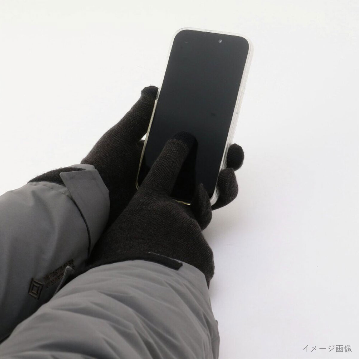 親指・人差し指・中指の先端には導電糸が使われており、装着したままタッチパネル操作に対応しているので、手袋を外さずスマホ操作も可能です。