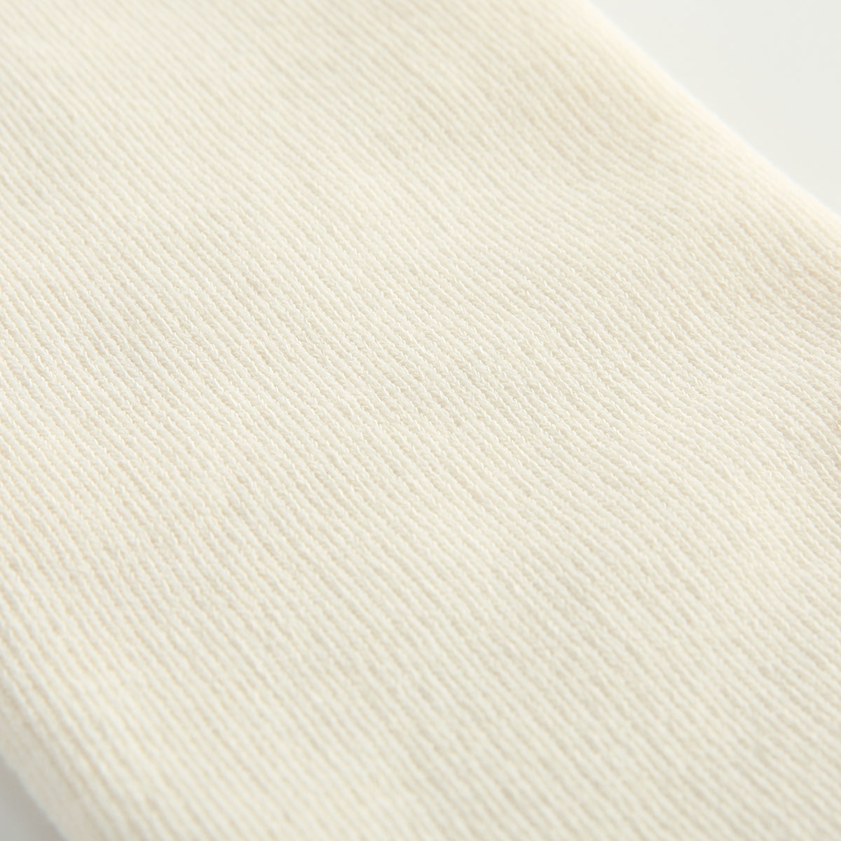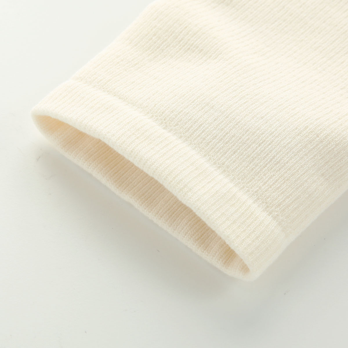 身生地に使用した吸湿発熱素材「ブレスサーモ」は、身体から放散される水分(水蒸気)を吸収して発熱。繊維間に発熱した空気を取り込み保温するので、あたたかな状態に保ちます。吸放湿性に優れているので、汗をかいても汗冷えやムレを抑制し カラッとドライなつけ心地をキープ。