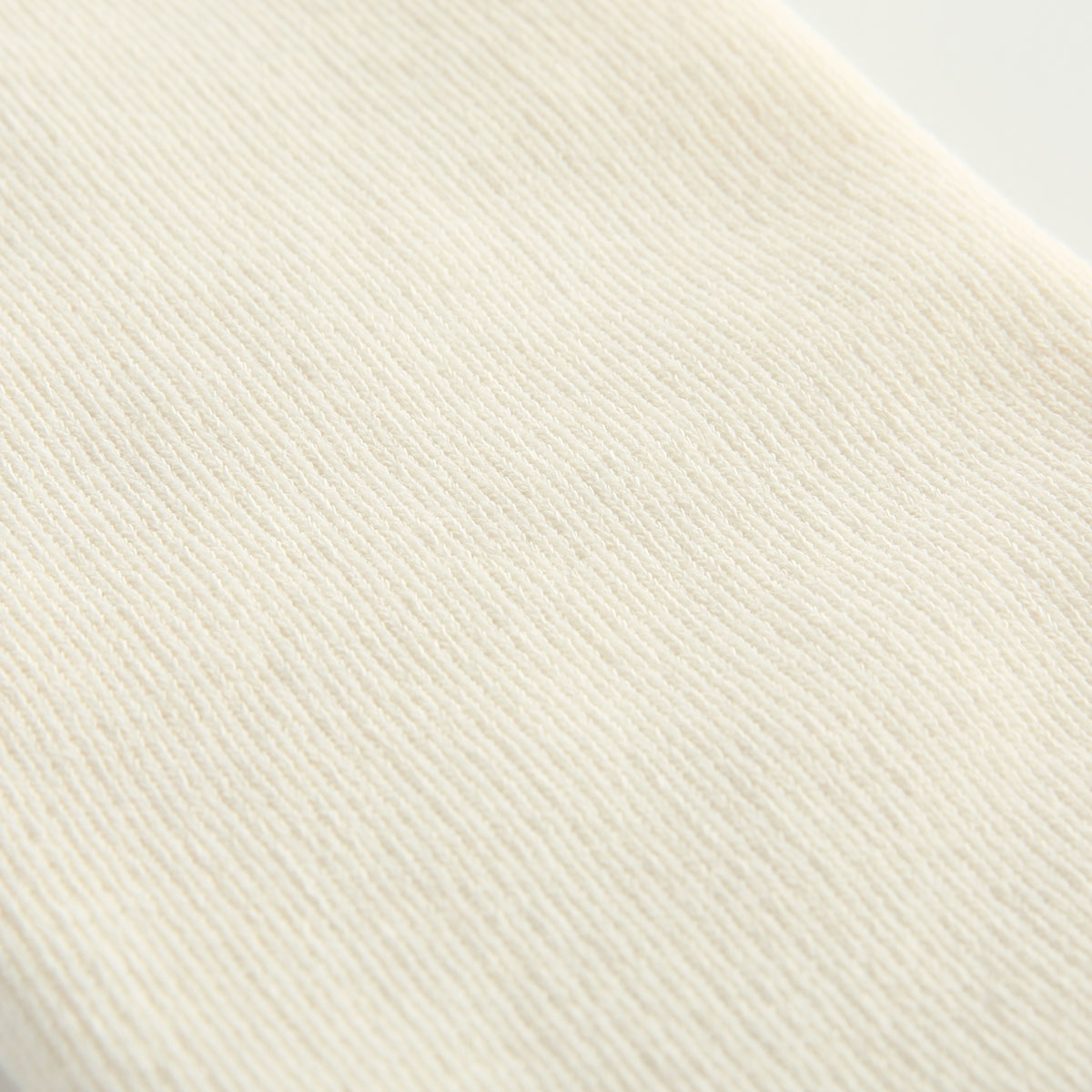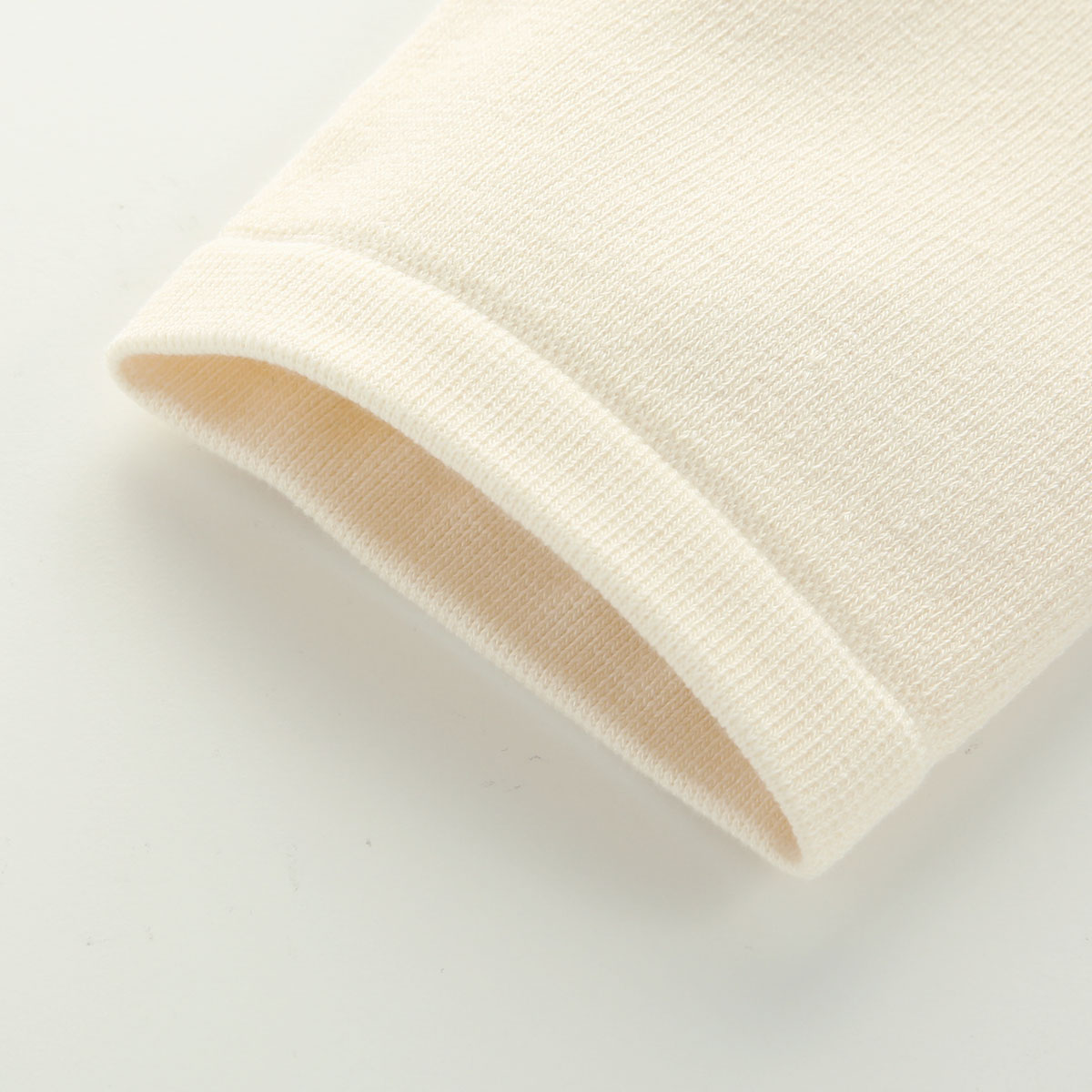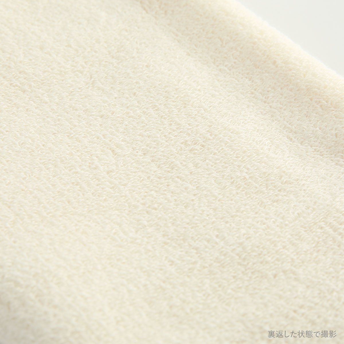 身生地に使用した吸湿発熱素材「ブレスサーモ」は、身体から放散される水分(水蒸気)を吸収して発熱。繊維間に発熱した空気を取り込み保温するので、あたたかな状態に保ちます。吸放湿性に優れているので、汗をかいても汗冷えやムレを抑制し カラッとドライなつけ心地をキープ。