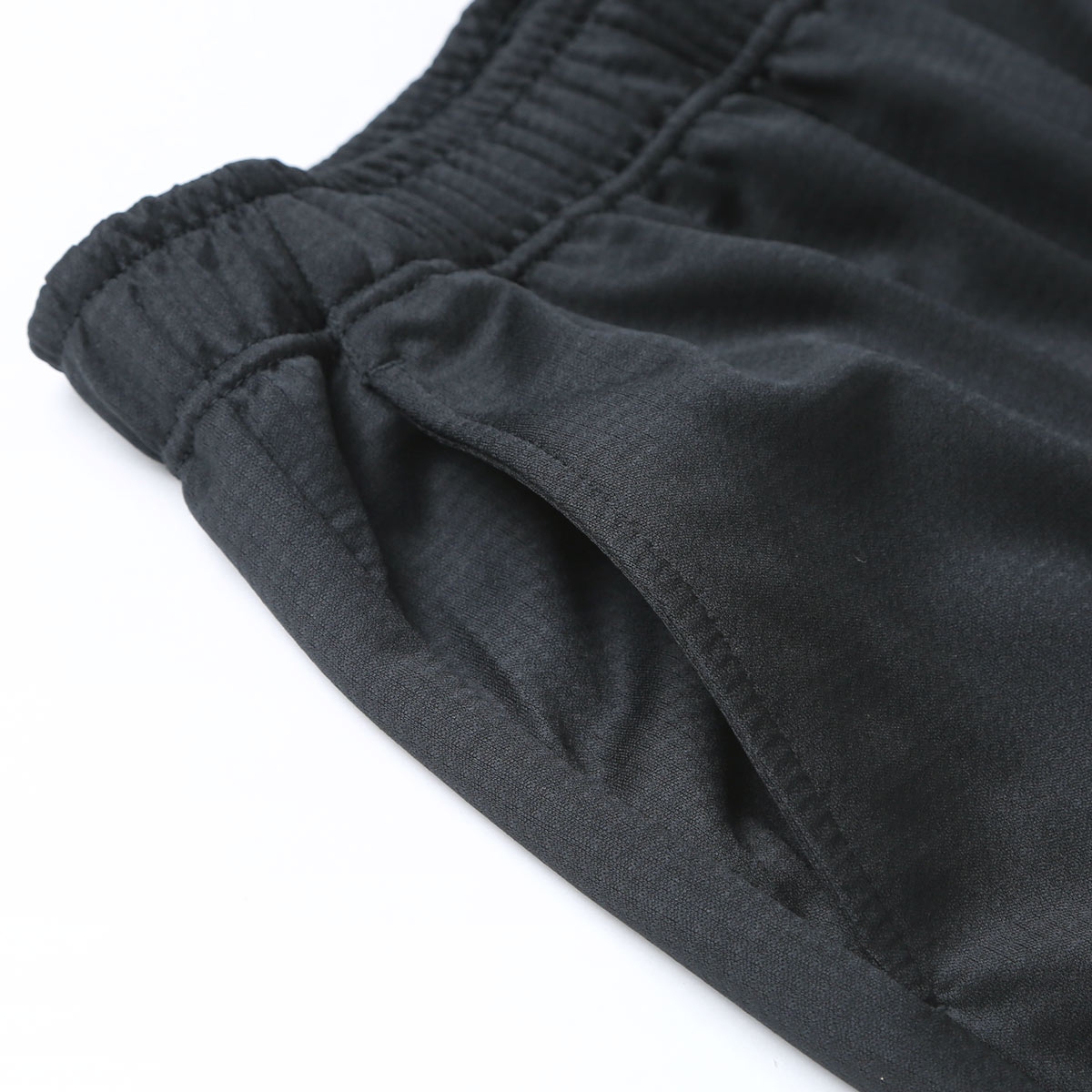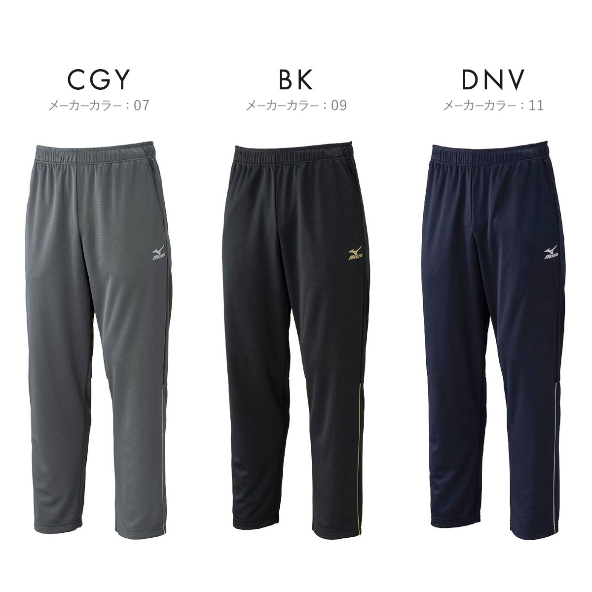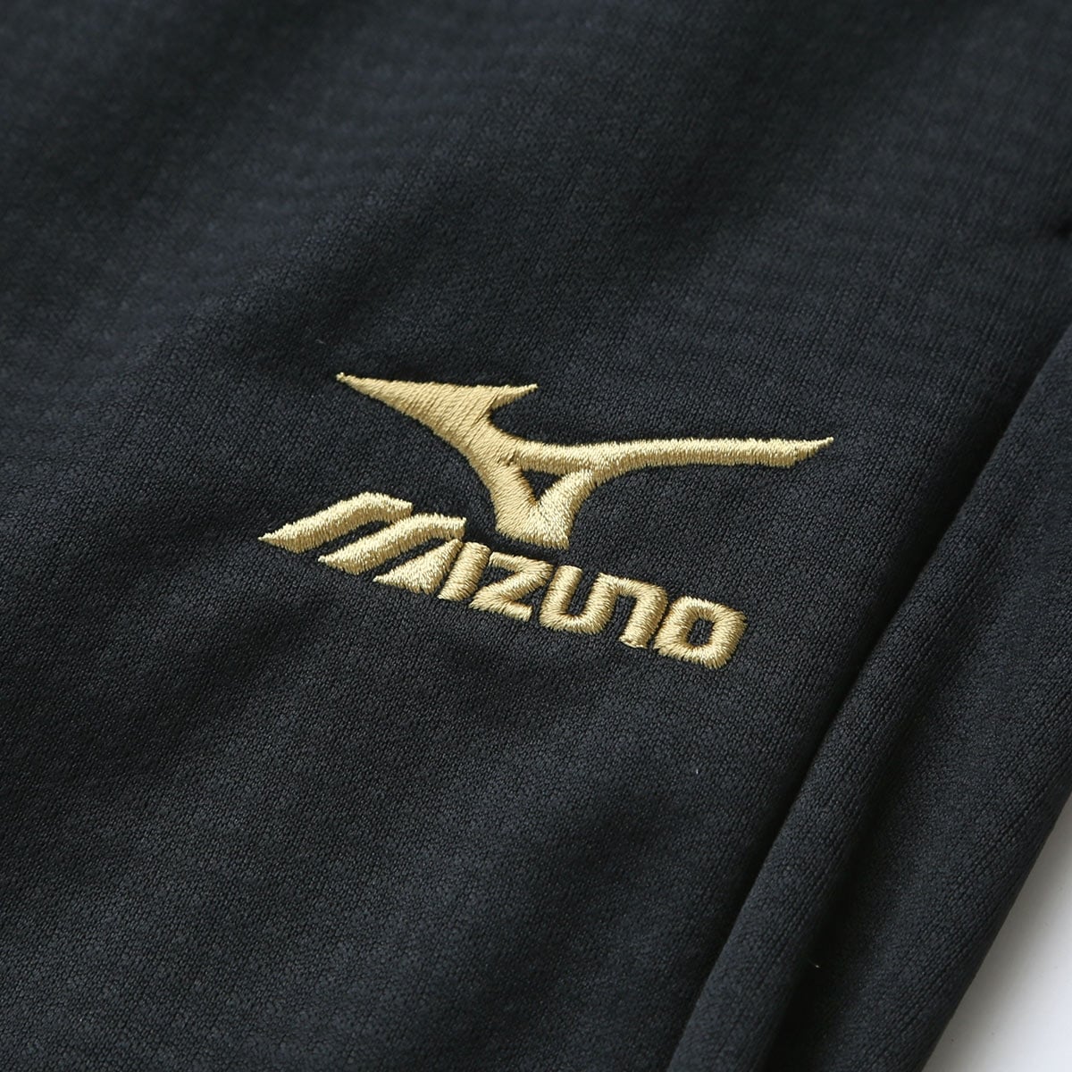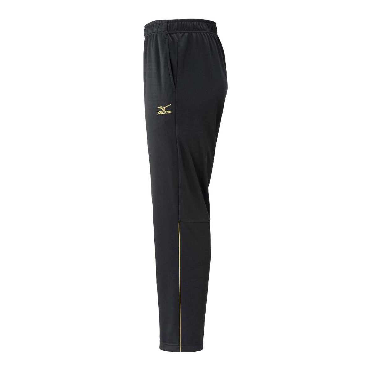 両サイドにはポケット付き、ウエストはゴム+ドロスト付きでお好みのフィット感に。左太腿にはミズノマーク&ロゴ刺繍入りです。