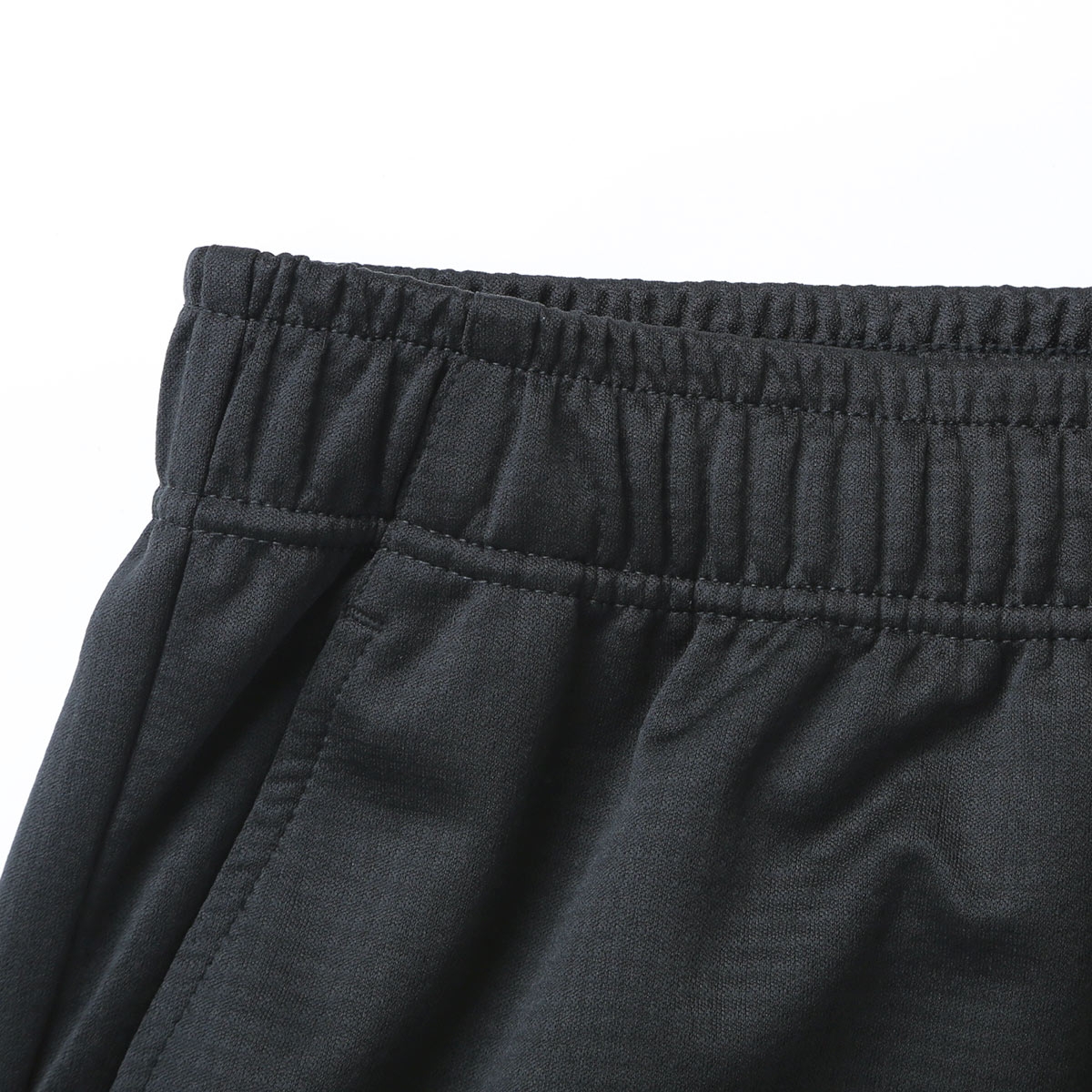身生地は薄くて滑らかなポリエステル100%素材。肌側がワッフルのように凸凹しているので汗をかいても張り付きにくく、軽いはき心地です。汗を素早く吸収・拡散する吸汗速乾機能つきなので、むれにくくさらっと快適な状態に保ちます。