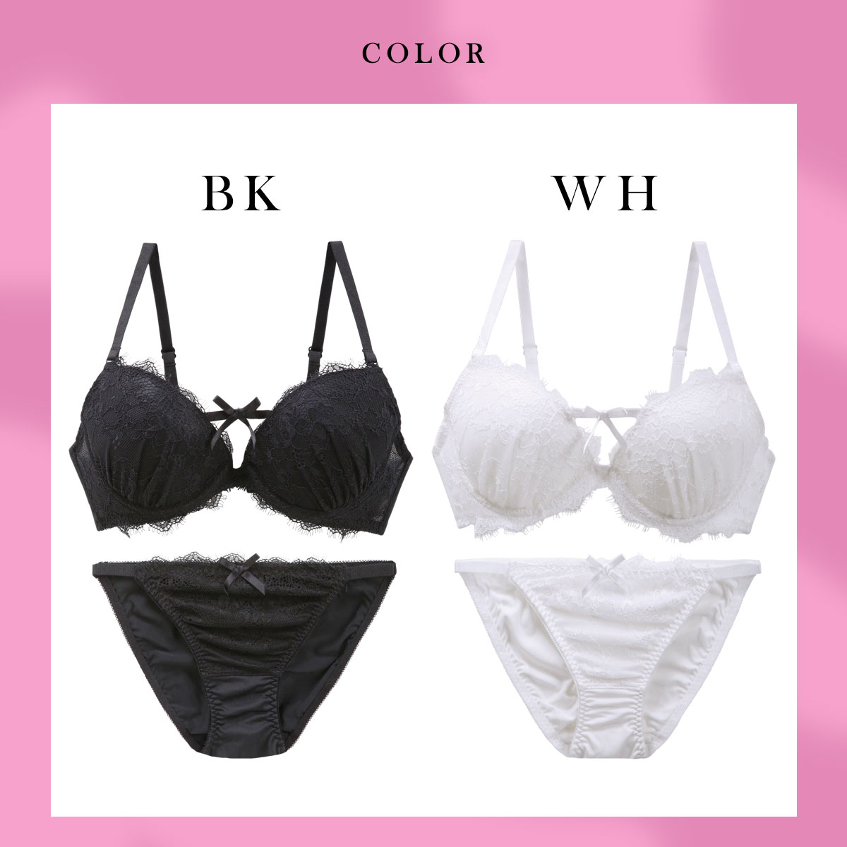 エレガント フロントリボン×アイラッシュ ブラセット CDEF80-95 谷間 大きいサイズ グラマー 脇寄せ 盛り ブラジャー ショーツ Elegante