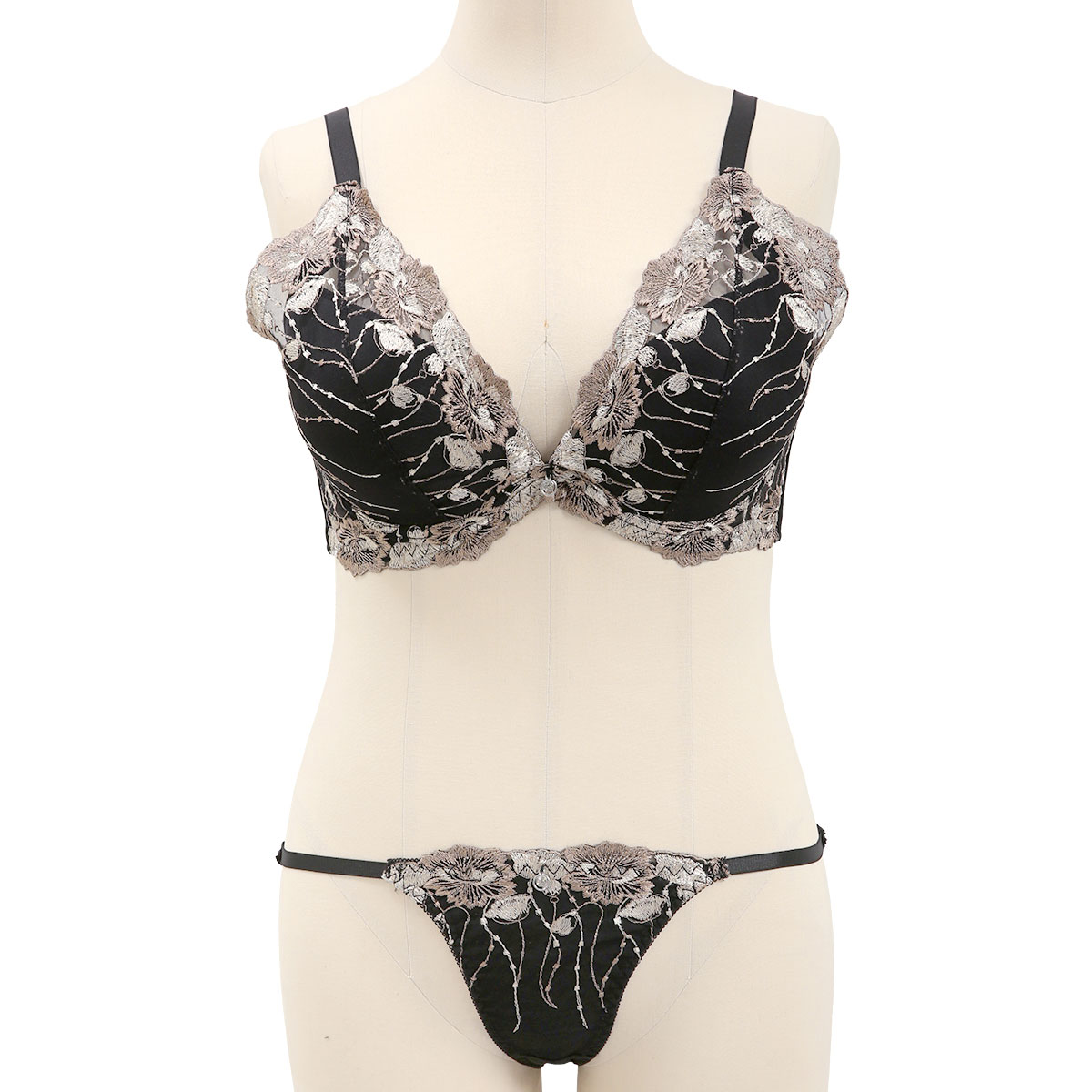 エレガント プランジ風ブルームレース ブラセット GHI65-95 大きいサイズ グラマー 盛り胸 谷間 脇寄せ セット Elegante