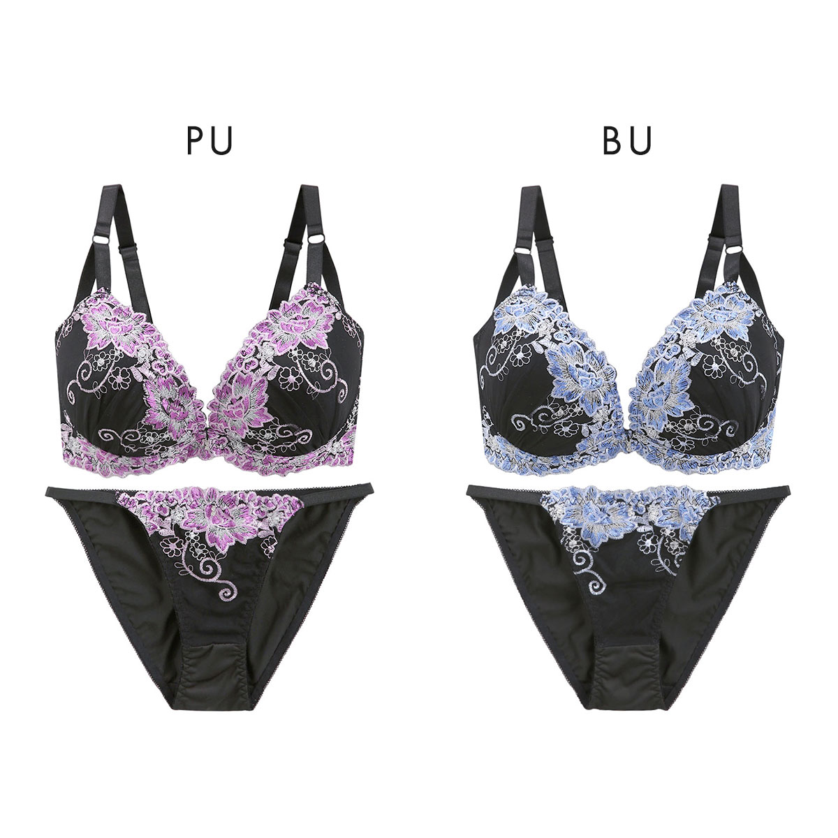 エレガント プランジ風ブルームレース ブラセット GHI65-95 大きいサイズ グラマー 盛り胸 谷間 脇寄せ セット Elegante
