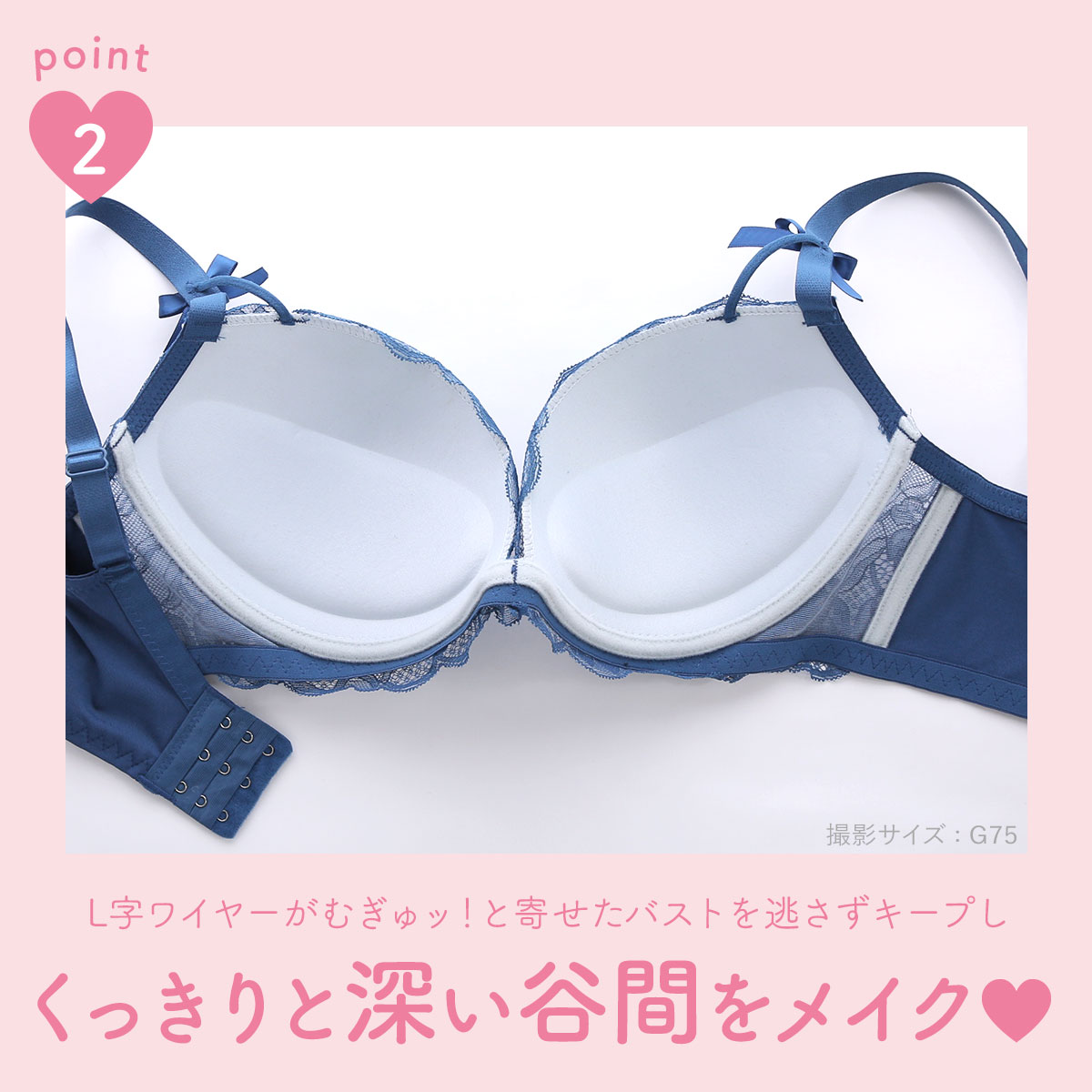 エレガント 脇肉を谷間に変える脇高ブラ セレスティリボン ブラセット GHI65-95 脇寄せ 谷間 大きいサイズ グラマー 盛り ブラジャー ショーツ Elegante
