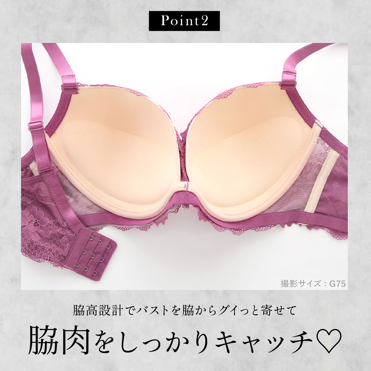 エレガント 脇肉を谷間に変える脇高ブラ グラマラスレーシー ブラセット CDEF80-95 大きいサイズ グラマー 盛り胸 寄せ上げ ブラジャー ショーツ