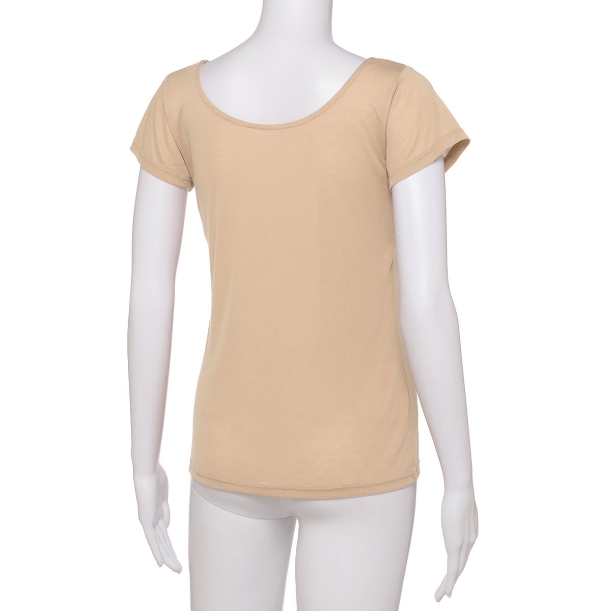 オールシーズン使える ベーシック ブラトップ カップ付き フレンチ袖 インナー レディース 無地 綿混 ドライ