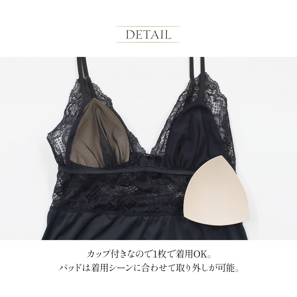 セレブビューティー Celeb Beauty ルームウェア パジャマ 上下セット シンプルレース キャミソール カップ付き & タップパンツ