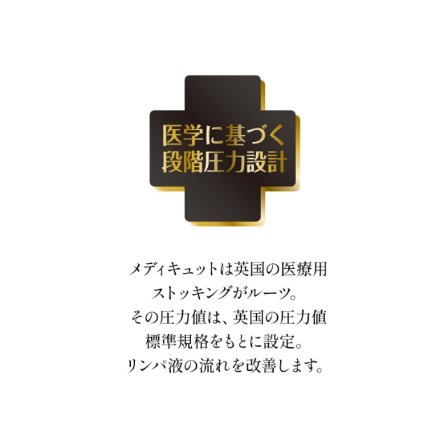 こちらは足首21hPa、ふくらはぎ16hPa、太もも11hPaの段階着圧で、脚をキュッと引き締める理想のストッキング。高圧力設計でリンパ液の流れを改善&つらい脚のむくみ予防を叶えます。
