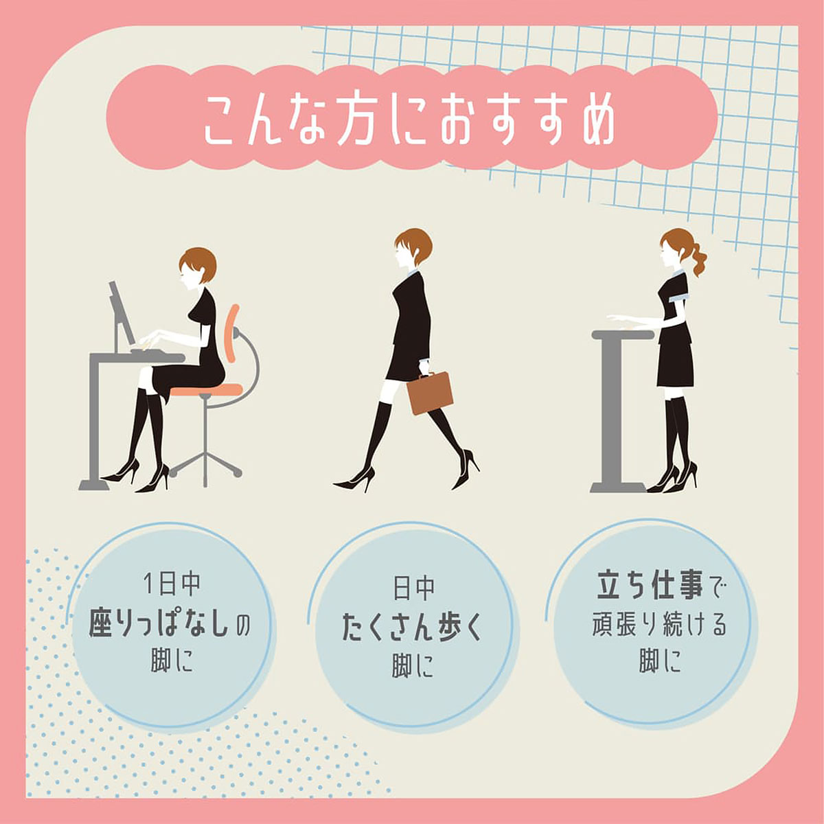 | 仕 様 | ・高着圧タイプ ・段階圧力設計:足首31hPa ふくらはぎ20hPa |