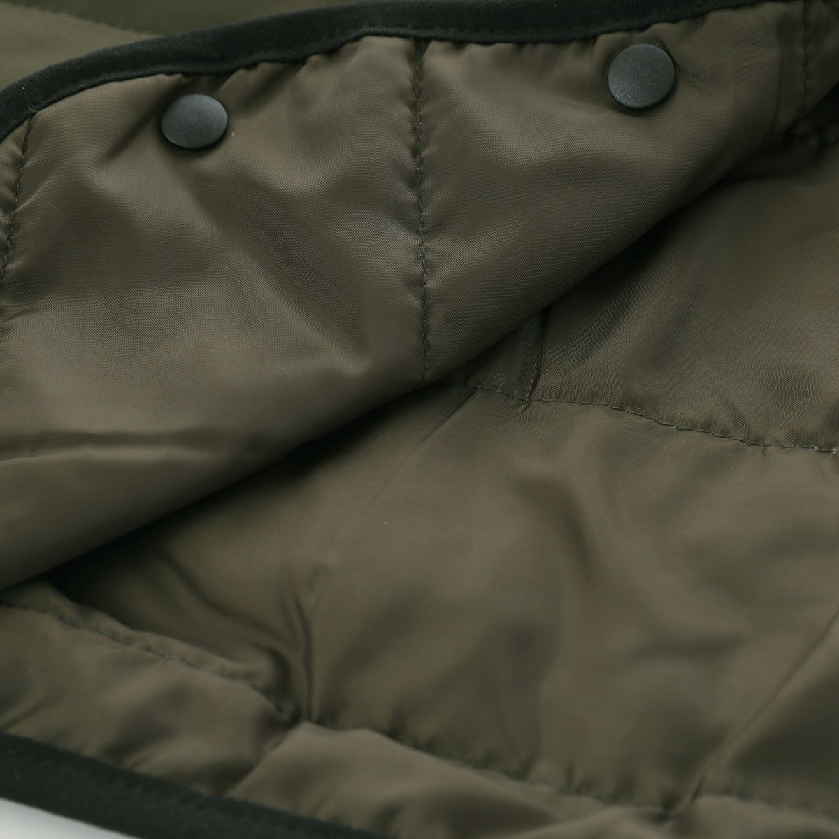 ふっくらとした中綿が体温をしっかりとキープし、ダウンのような暖かさで寒さから体を守ります。嵩張りにくい設計のため、ご自宅での部屋着に重ねても動きやすく、スマートに温活ができます。さらに、スポーツ観戦や、冬のキャンプなどのアウトドアシーンでは、アウターの下に忍ばせて暖かさを底上げするミドルレイヤーとして活躍。一枚あると、様々なシーンで活躍する防寒対策の決定版です。