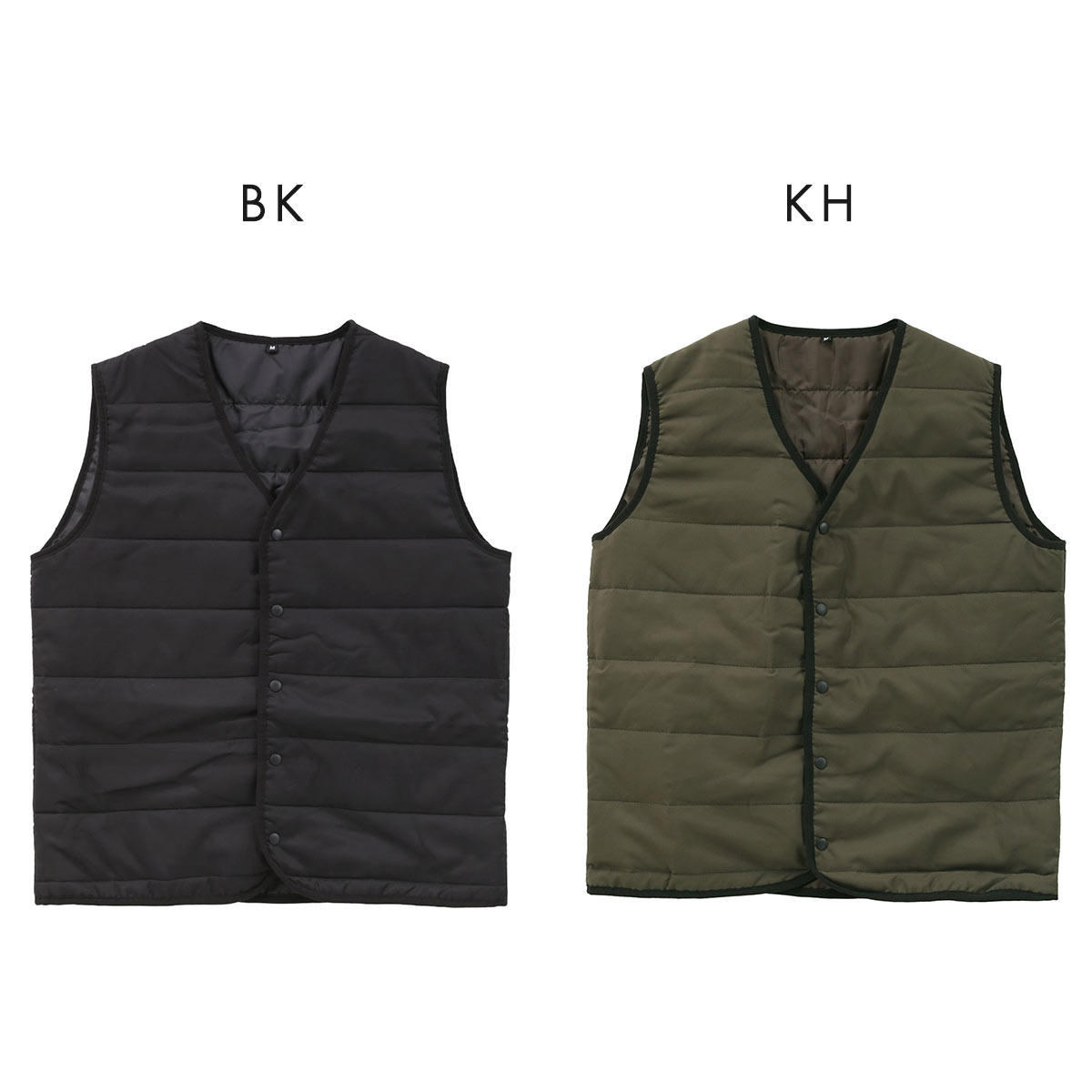 軽さと保温性を両立させた中綿入りインナーベストです。