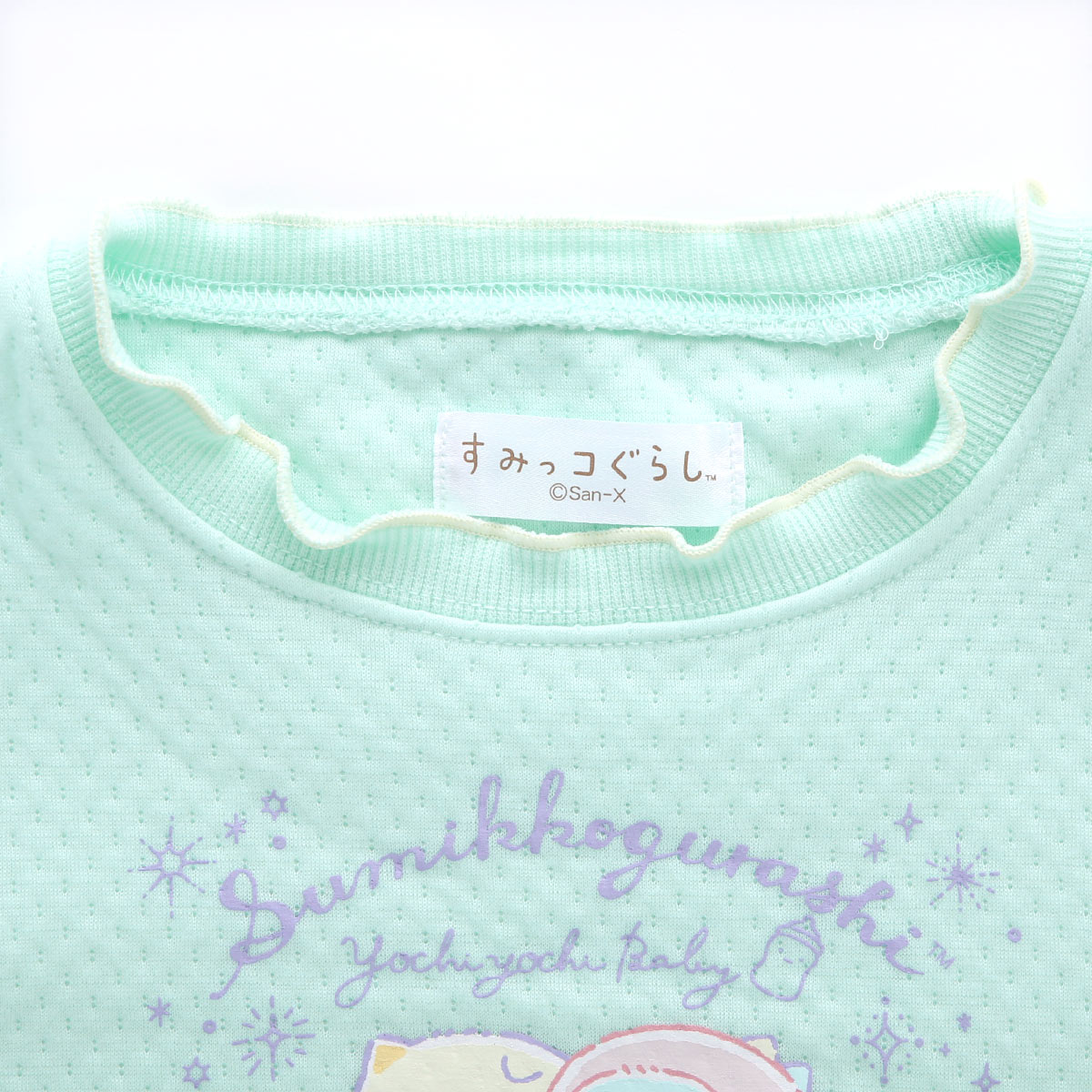 すみっコぐらし 猫爪キルト パジャマ 長袖 トップス ロングパンツ 上下セット キャラクター ルームウェア キッズ 100 110 120(EM-エメラルド-110)
