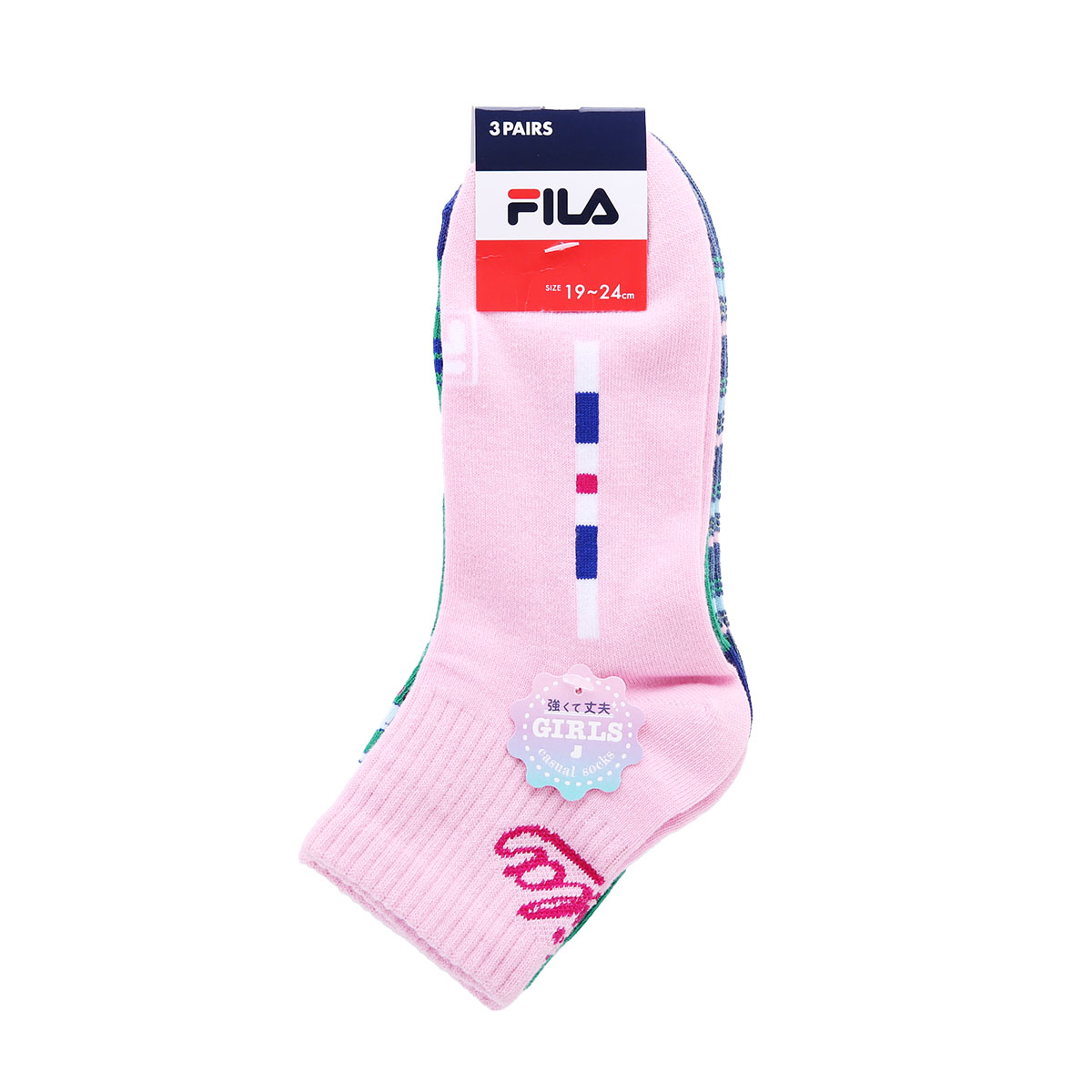 フィラ キッズ ショート丈 ソックス 3足セット ガールズ 女児 靴下 ジュニア 綿混 FILA(Set-19-24cm)