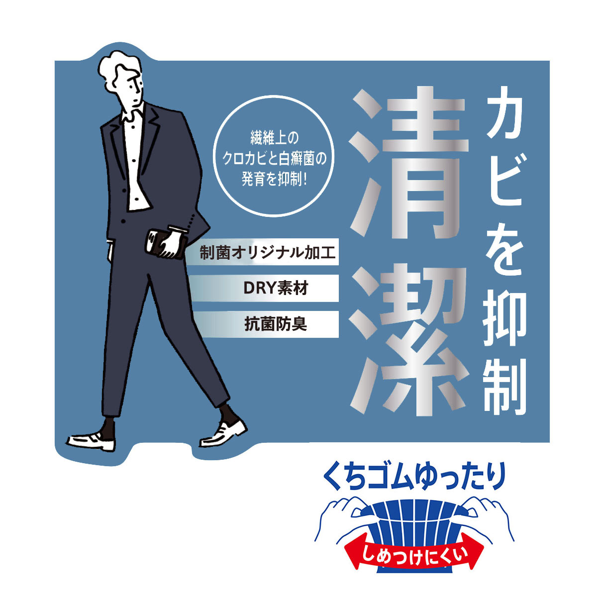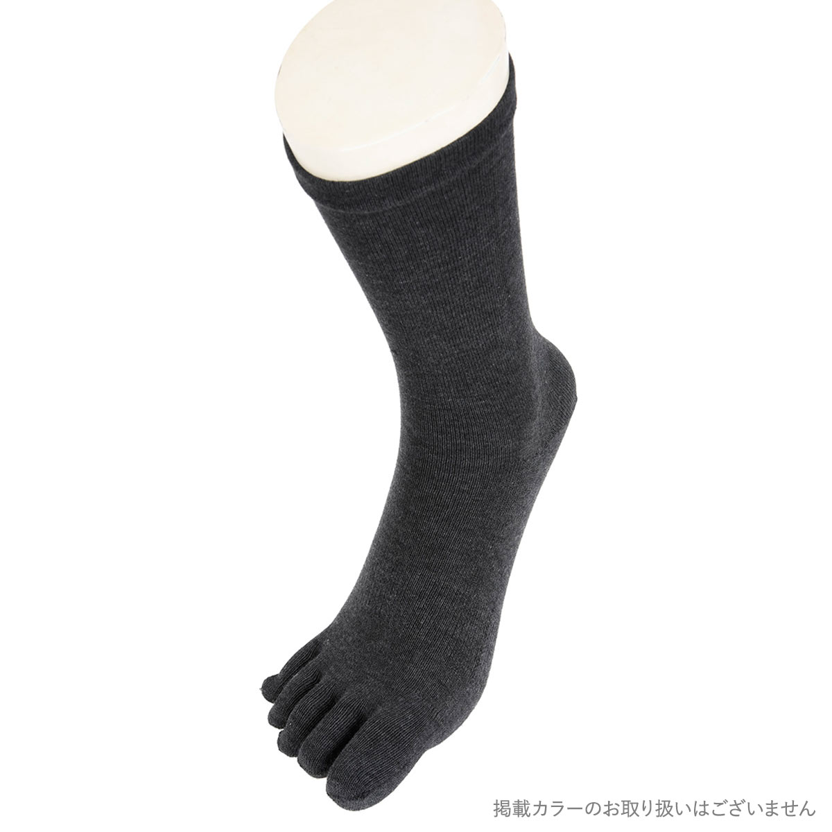 福助 満足 清潔 5本指 クルー丈 ソックス メンズ 靴下 口ゴムゆったり 平無地 fukuske
