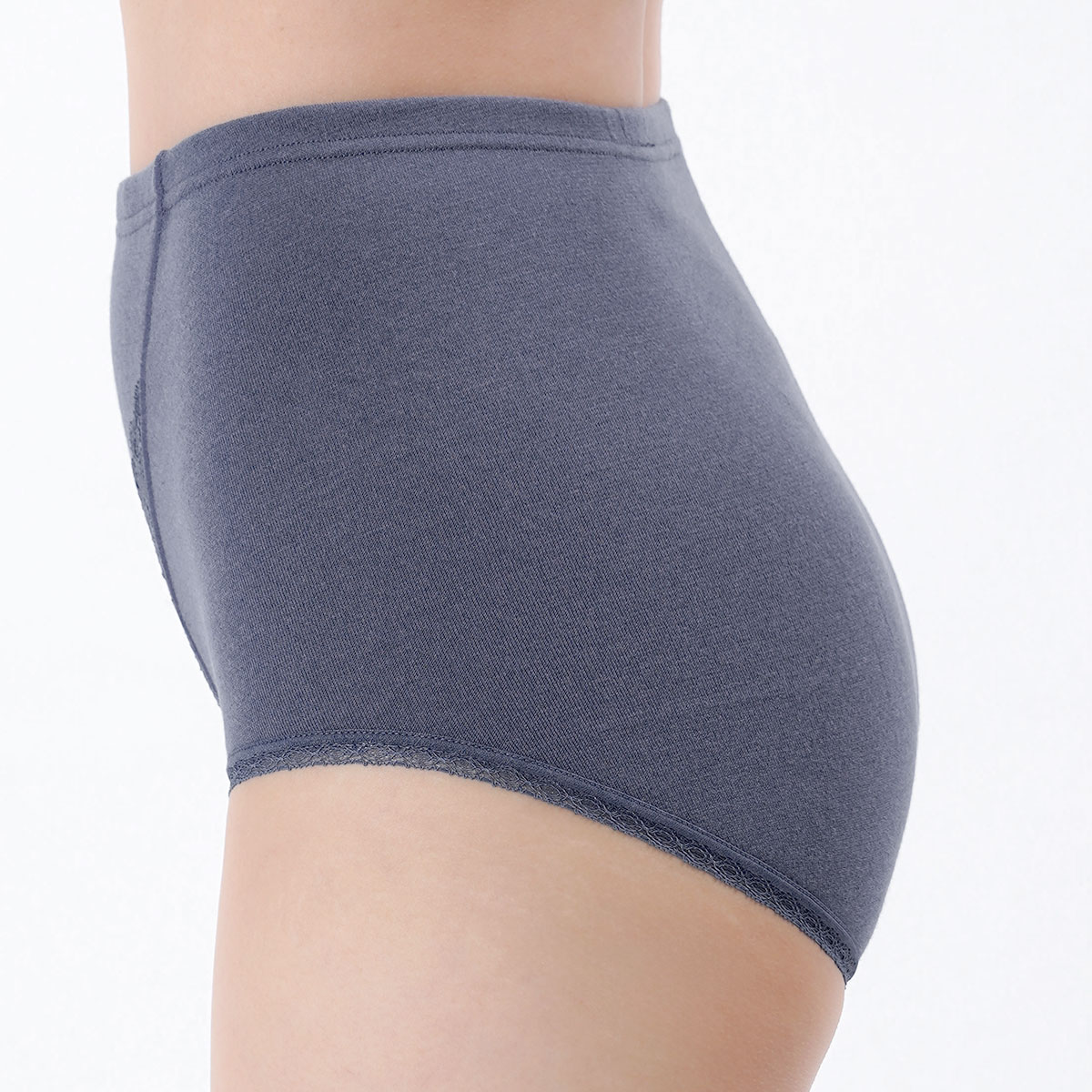 吸湿発熱素材をショーツ全体に使用し、子宮、仙骨などお腹全体を温めることで、女性ならではの不調を和らげる効果が期待できます。冷えが気になるお腹周りは生地二重構造になっており、空気の層でよりあったか感を実感できます。