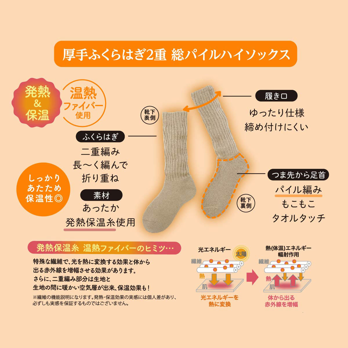 【10%OFF+ポイント10%】靴下サプリ とにかくあったかい まるでこたつソックス 靴下 ハイソックス レディース 冷え対策 発熱 23-25cm