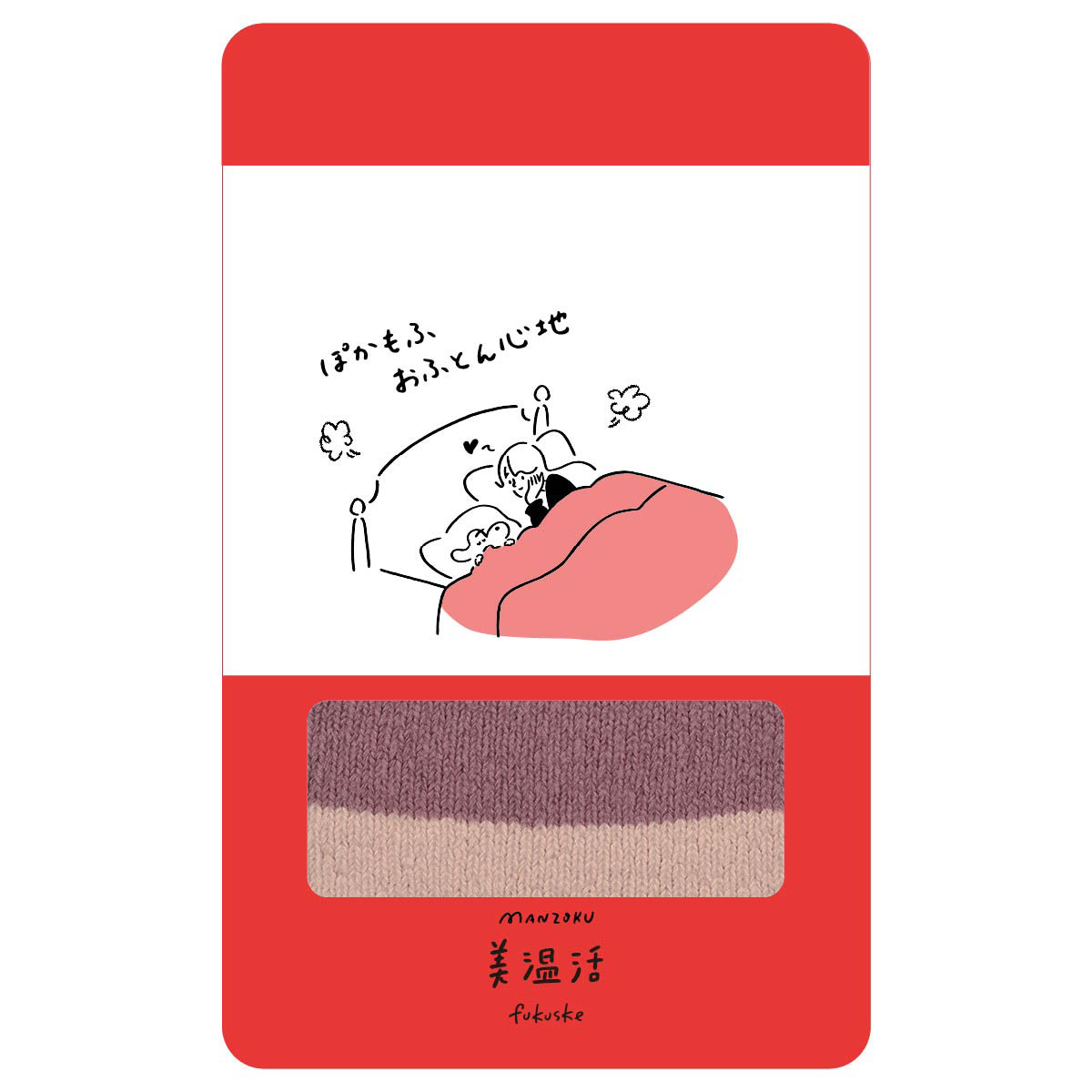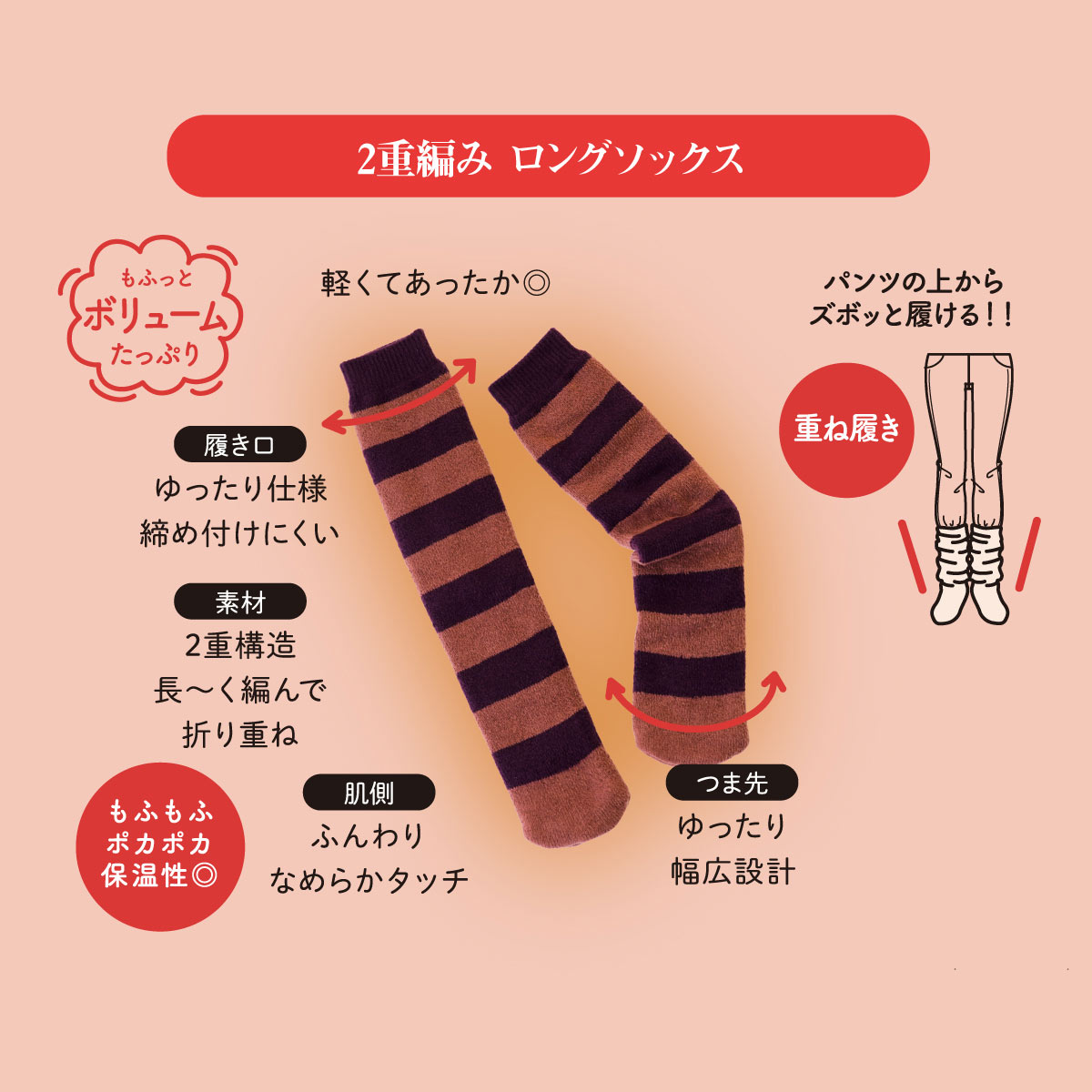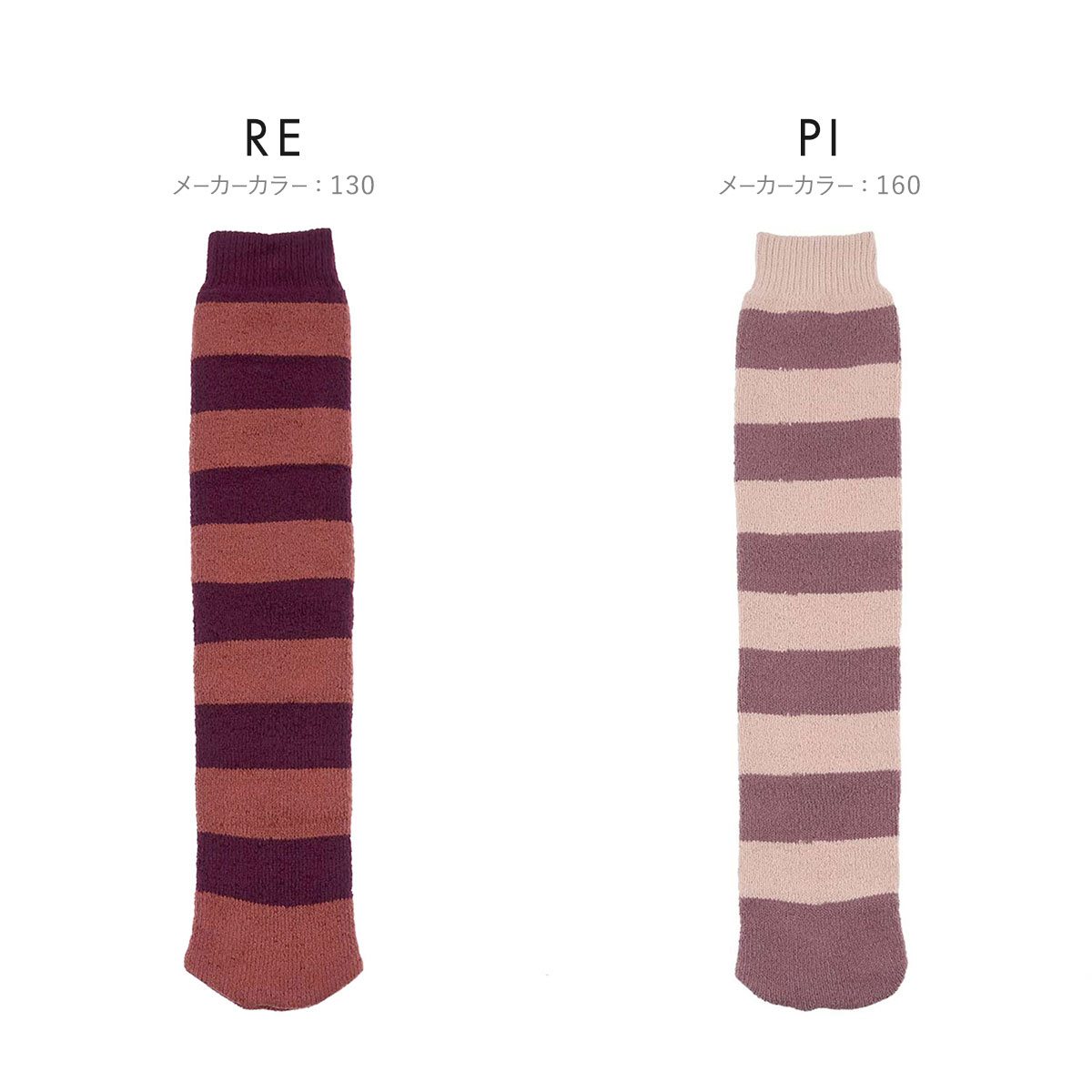 福助 満足 美温活 おふとん心地 2重編み ボーダー ロング ソックス 60cm丈 レディース ルームソックス 22-25cm fukuske