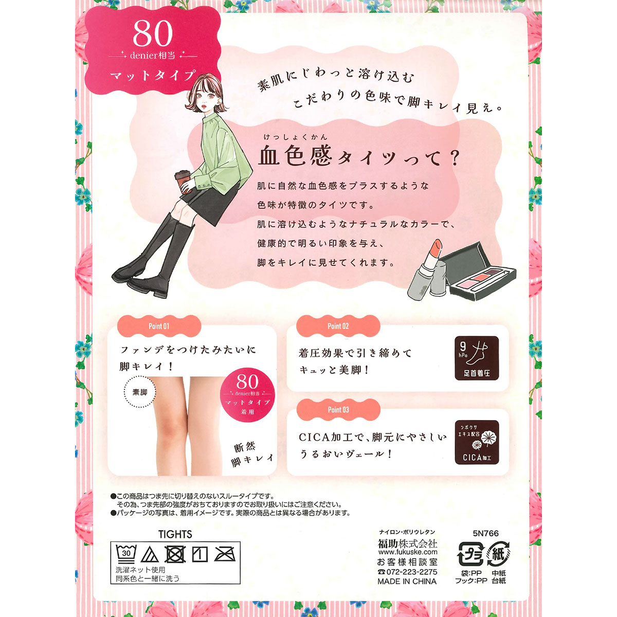 暖かさと素肌感の両方を実現できるベージュカラーのタイツの登場です。80デニールなので暖かく、しっかりと傷や毛穴など肌の悩みをカバーしてくれます。お肌に合わせた絶妙なカラー展開、防寒対策をしながら寒い時期もおしゃれを楽しめます。さらに着圧設計、CICA加工で保湿効果、つま先スルーと多機能です。