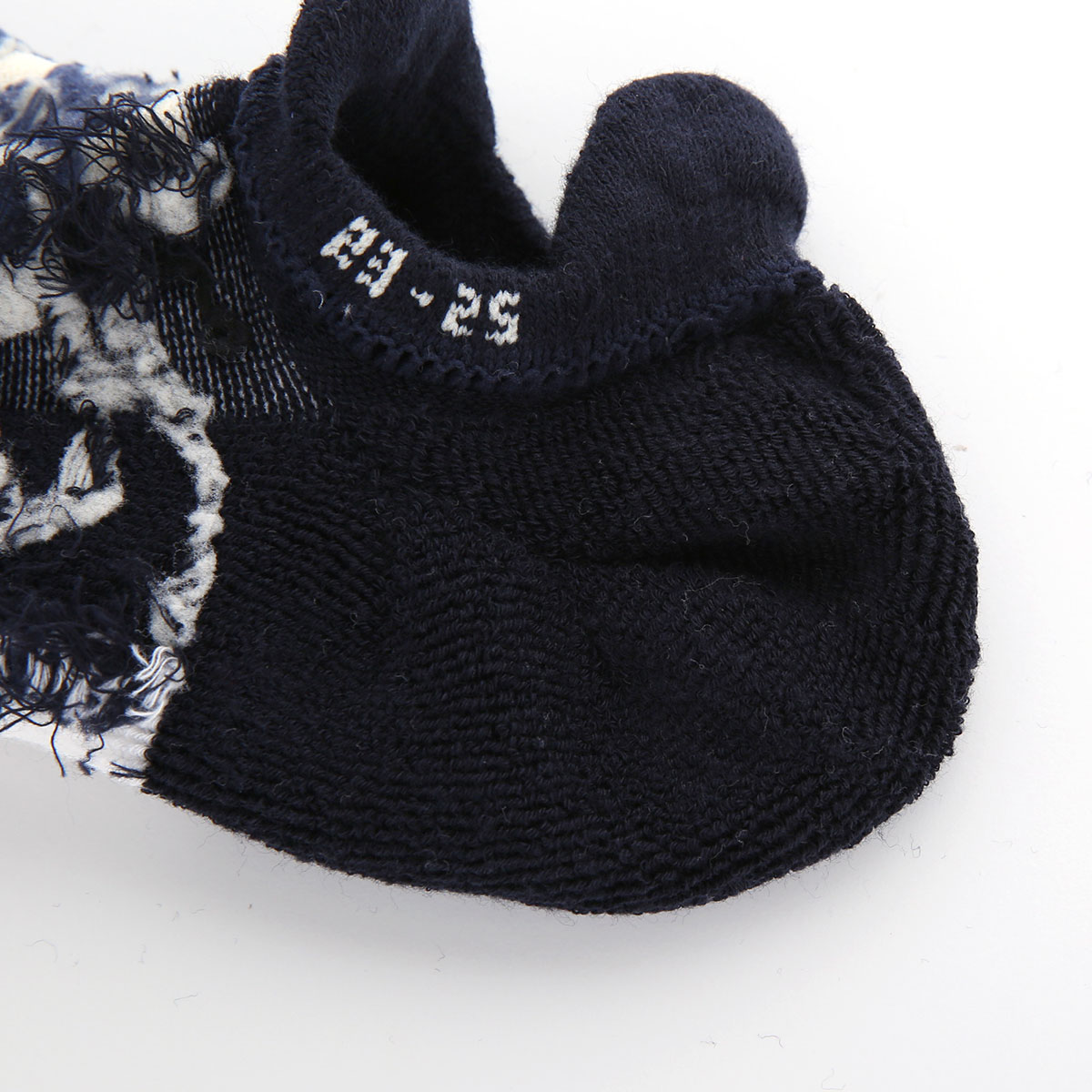 心地よい肌触りのパイル素材を使用し、遊び心あふれるスニーカー柄のデザイン。シューズを履いたときに靴下が見えないレングスの仕上がりになっています。