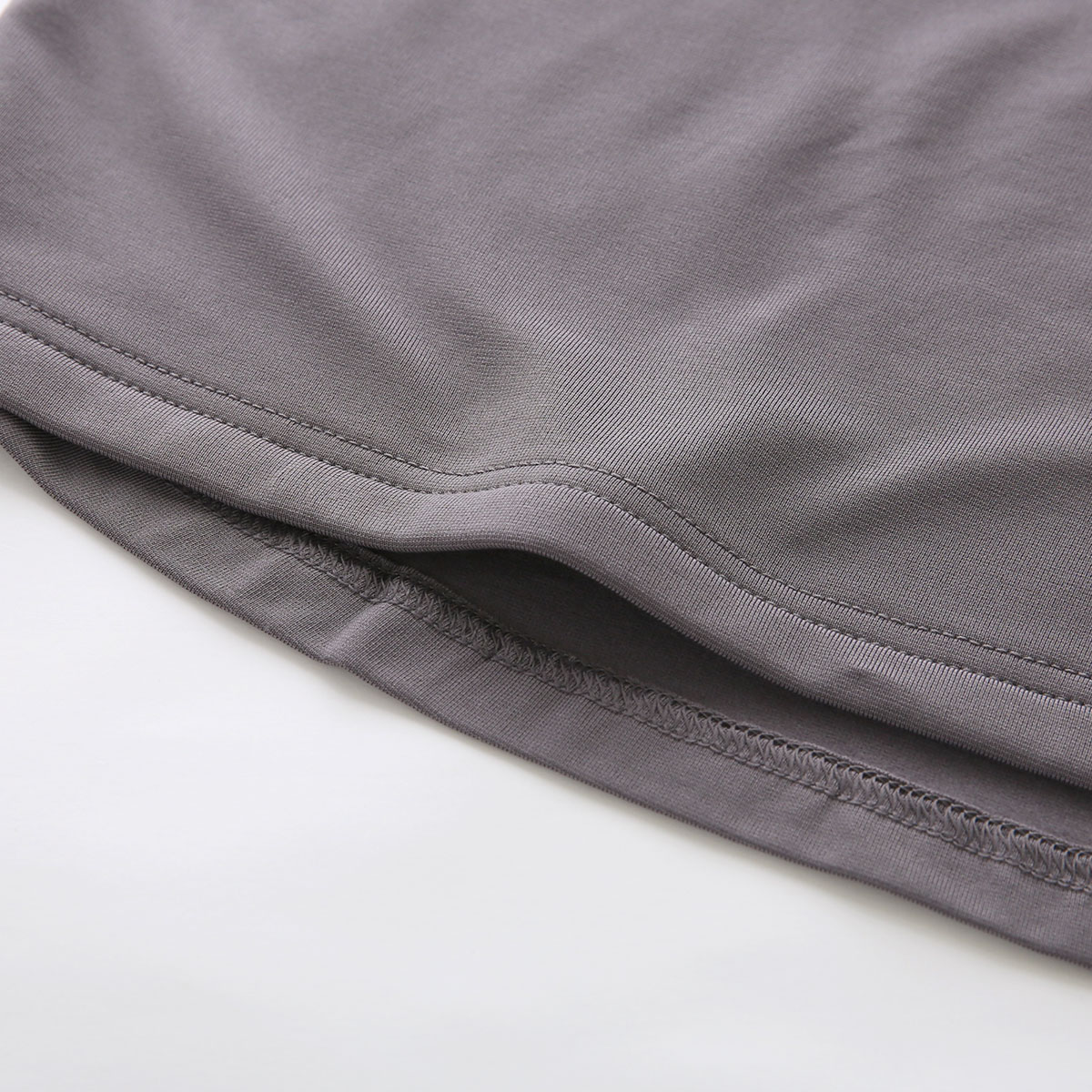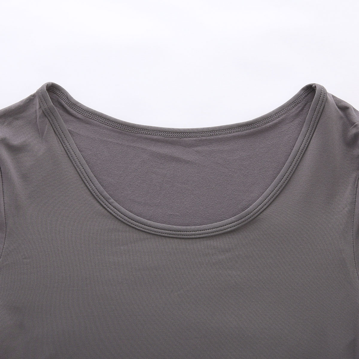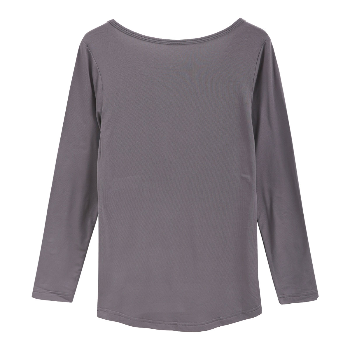 おなかは蓄熱素材を使用した2重仕様でしっかり温めてぽかぽか。ふんわりなめからな肌あたりの身生地は伸縮性があり、体にフィットします。首元は広めに設計しているので、アウターから見えにくいです。