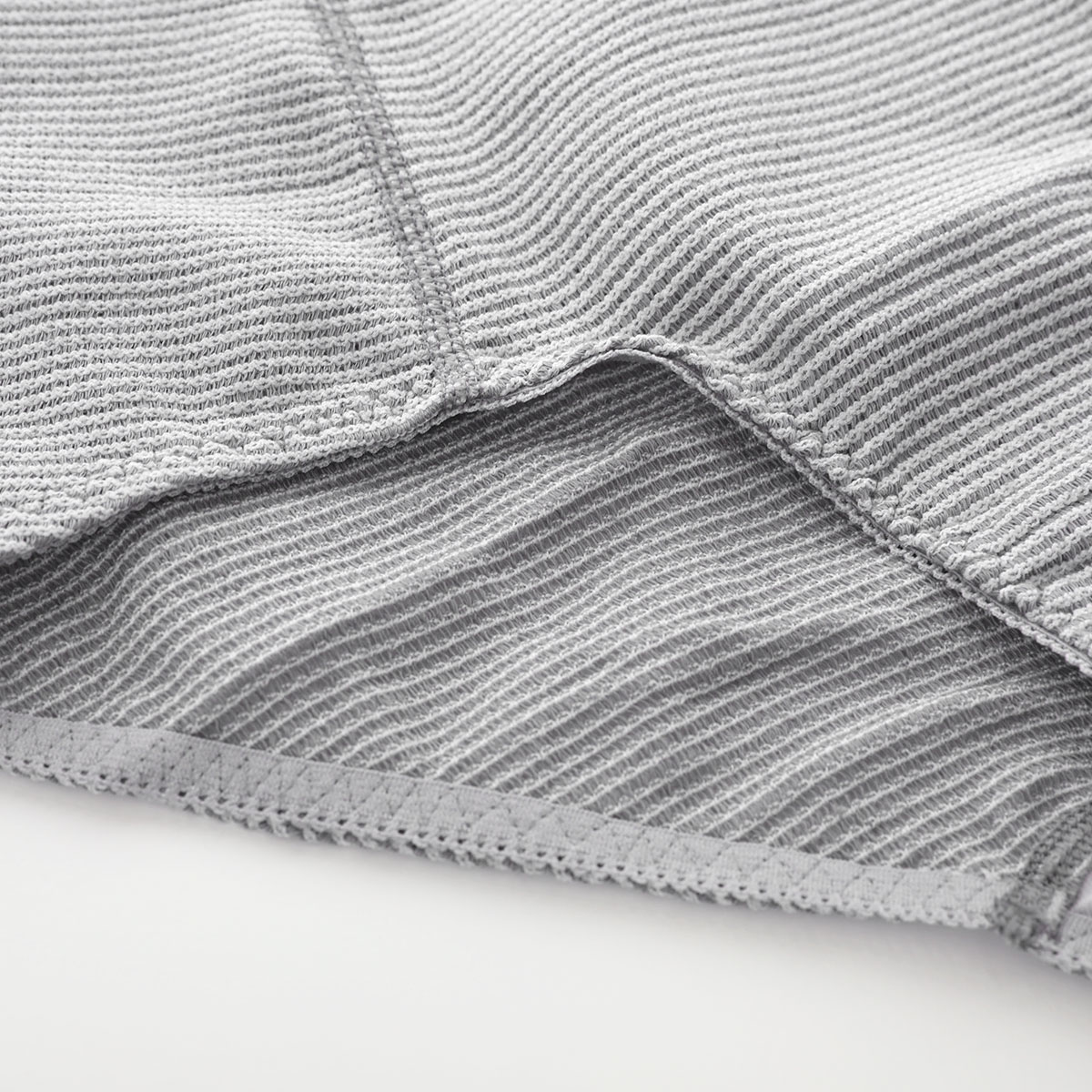 一般的な素材の約7倍の通気性を誇る包帯素材は医療用包帯を元に独自に開発された新素材。空気の層ができ、夏は涼しく、冬は暖かく着用していただけます。汗をかいてもムレにくくサラサラで、いつの間にか乾いている速乾性。ウエストゴムが無いので、まるで何も穿いていないかのような軽いはき心地とフィット感です。