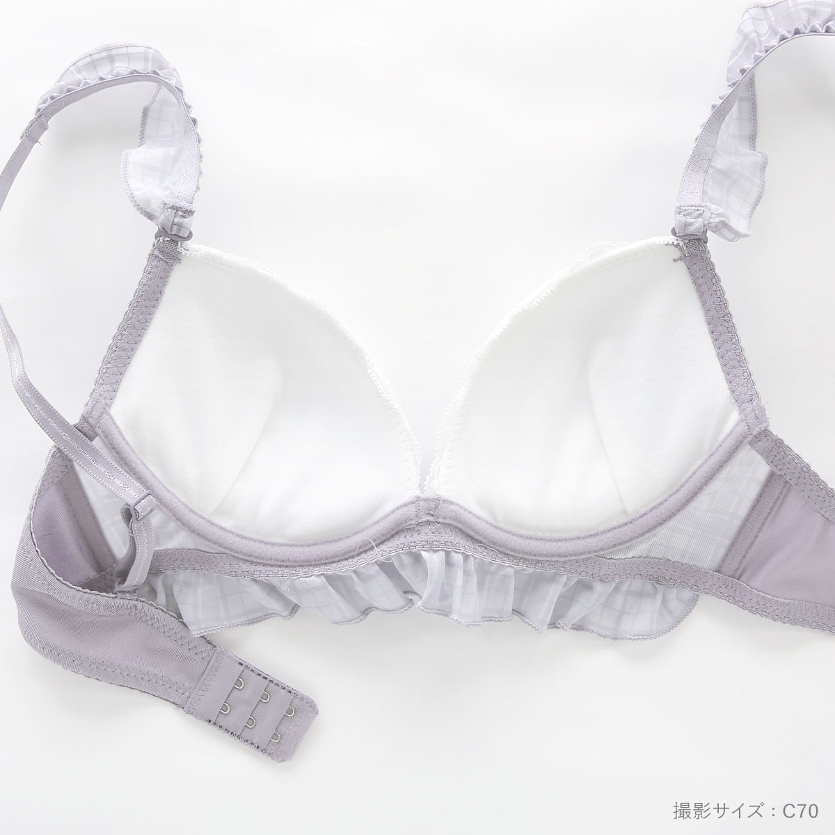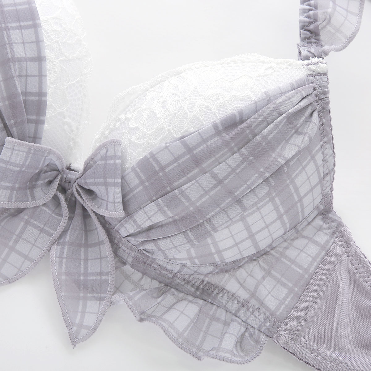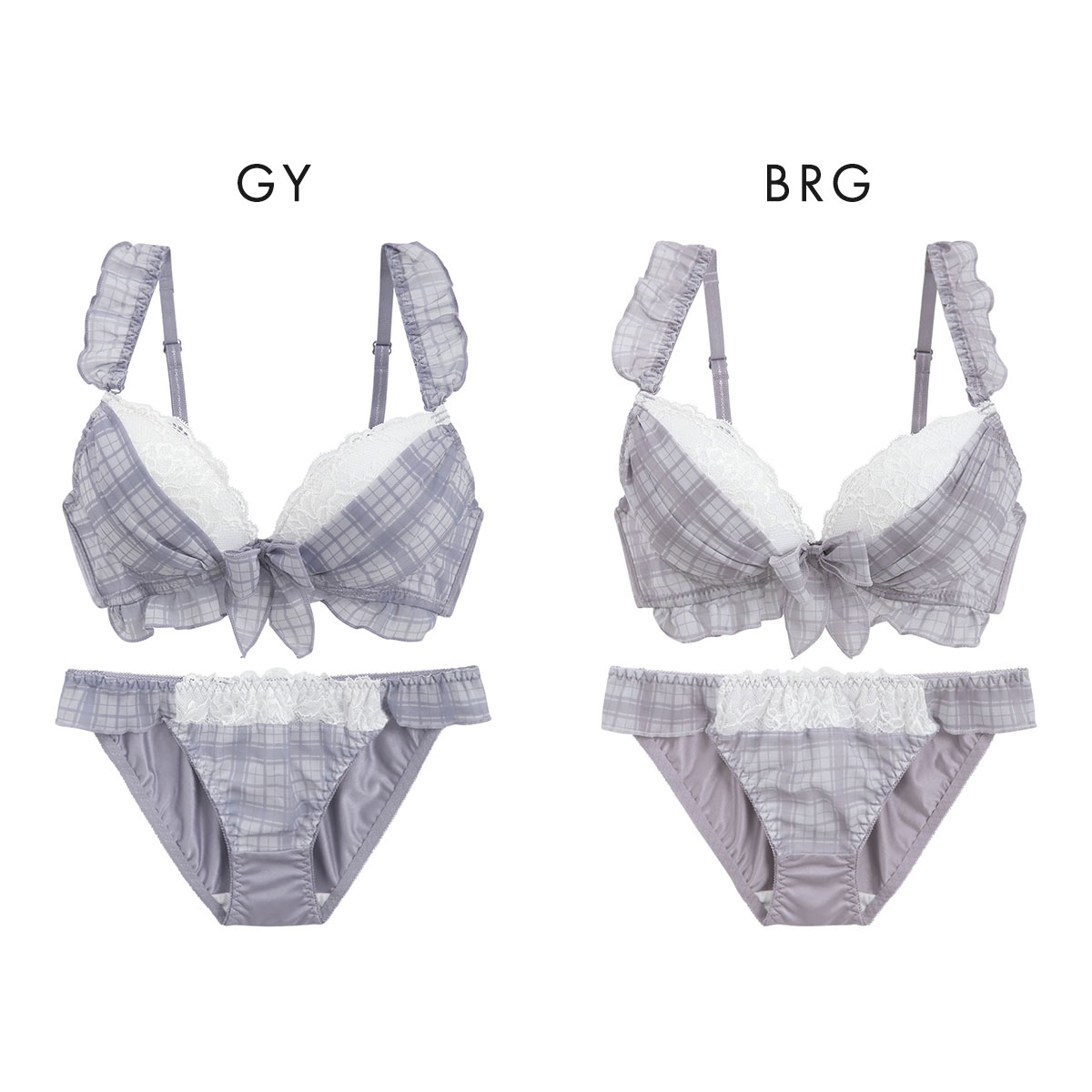 ピュアシェリ チェック柄シフォンフリル ブラセット ABCD ラジャー ショーツ セット 大きいサイズ 盛り 谷間 L字 脇寄せ PURECHERIE