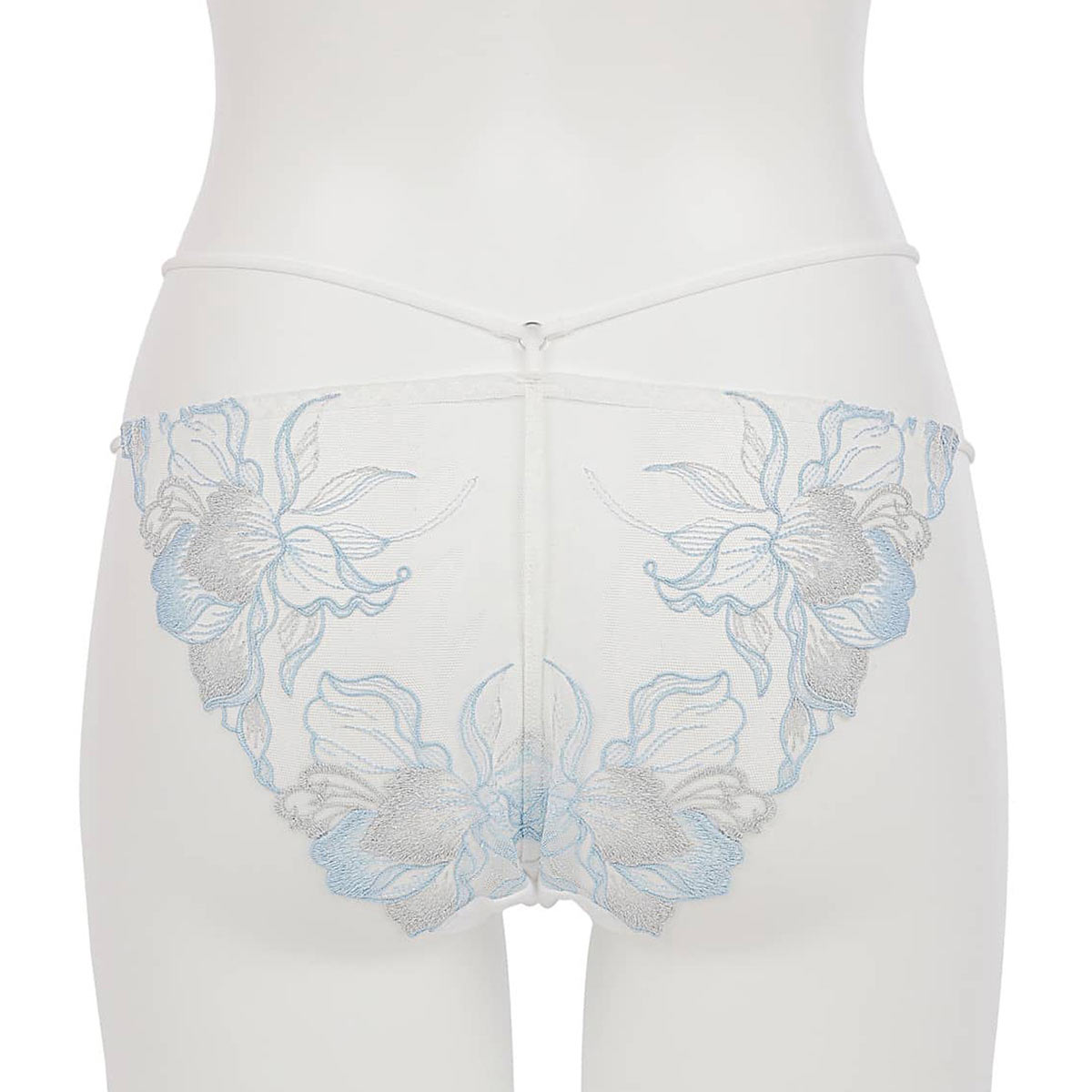 腰元にはダブルストリングを採用し、腰周りの華奢で美しいラインを強調。ときめく気持ちをそっと包み込む、夢見る乙女のためのショーツです。