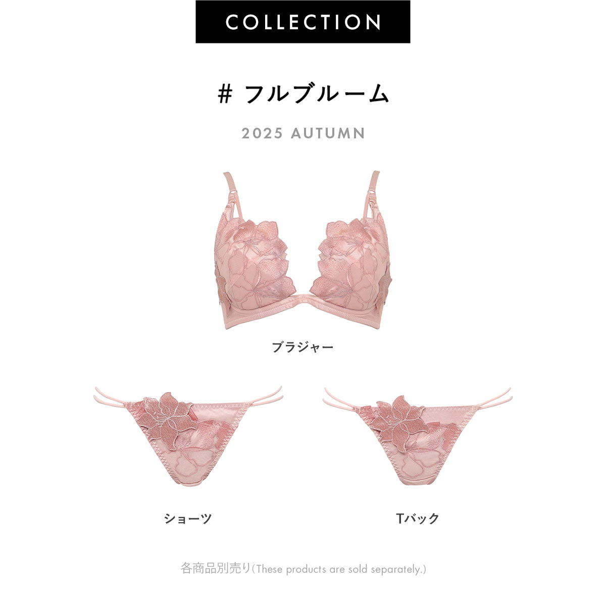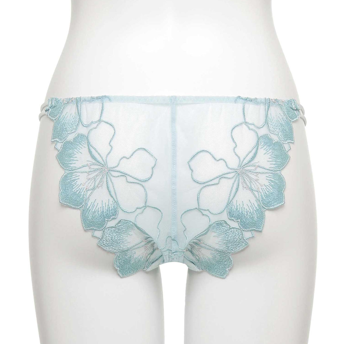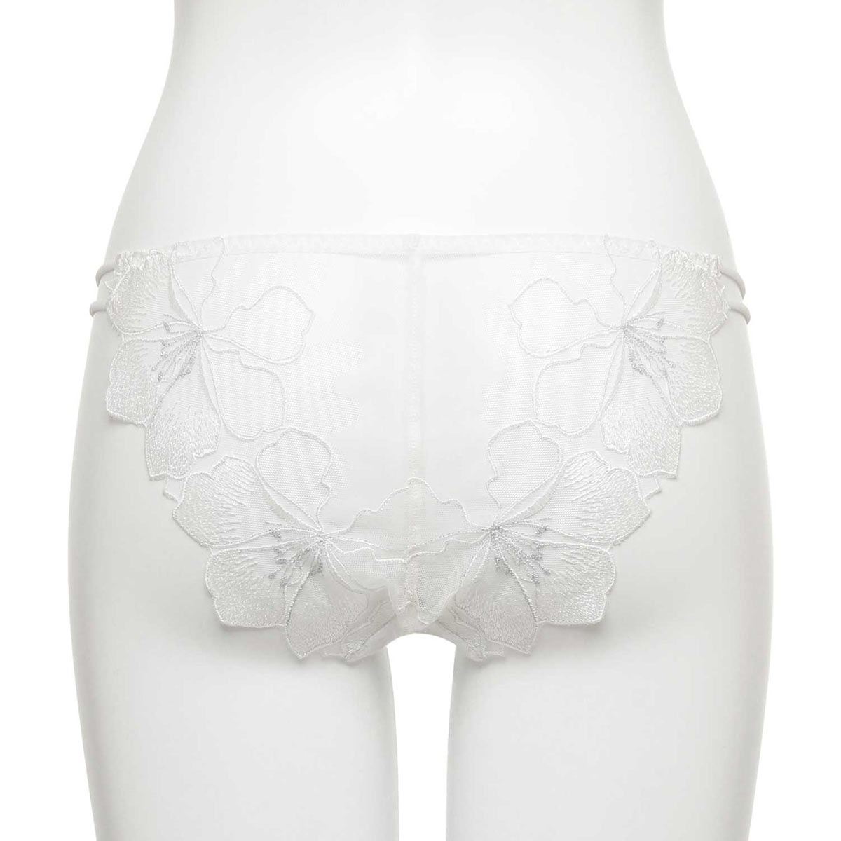 バックスタイルには、花びらのようなスカラップがヒップラインに沿って優雅に咲き誇り、女性らしさを際立たせるノーマルショーツです。