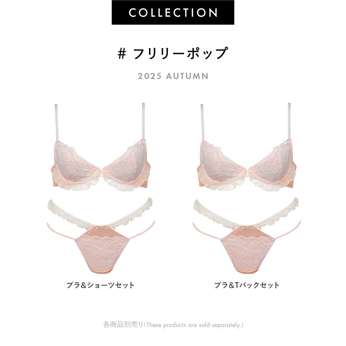 MINAMO×RAVIJOUR コラボレーション第3弾!待望のランジェリーコレクションが登場。オトナの甘さ漂うフリルにときめく、遊び心を纏うバイカラーのブラ&ノーマルショーツセットです。