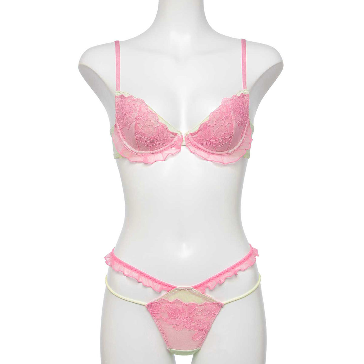 甘くロマンティックなディテールと、肌見せによるセンシュアルな魅力が融合した、ラグジュアリーで遊び心のあるランジェリーセットです。