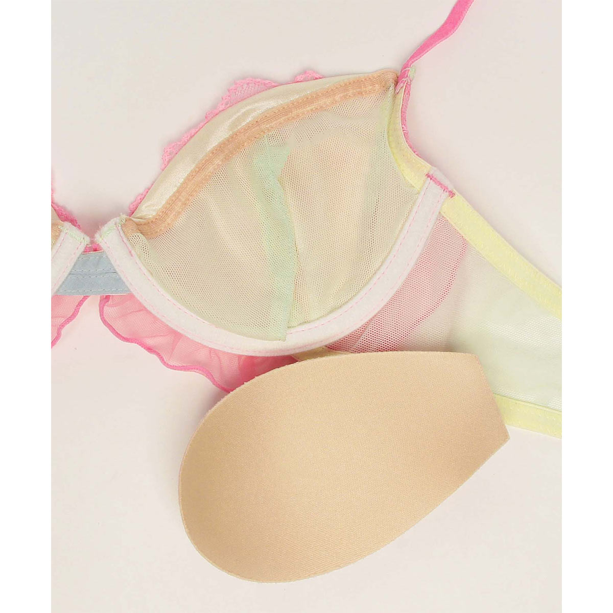 | 仕 様 | ブラ ・パッド:取り外し可能 ・ホック:2段3列 ・肩紐取り外し:不可 ・肩紐調節:可能 ・ワイヤー:あり ・サイドボーン:なし ・透感:サイドにあり