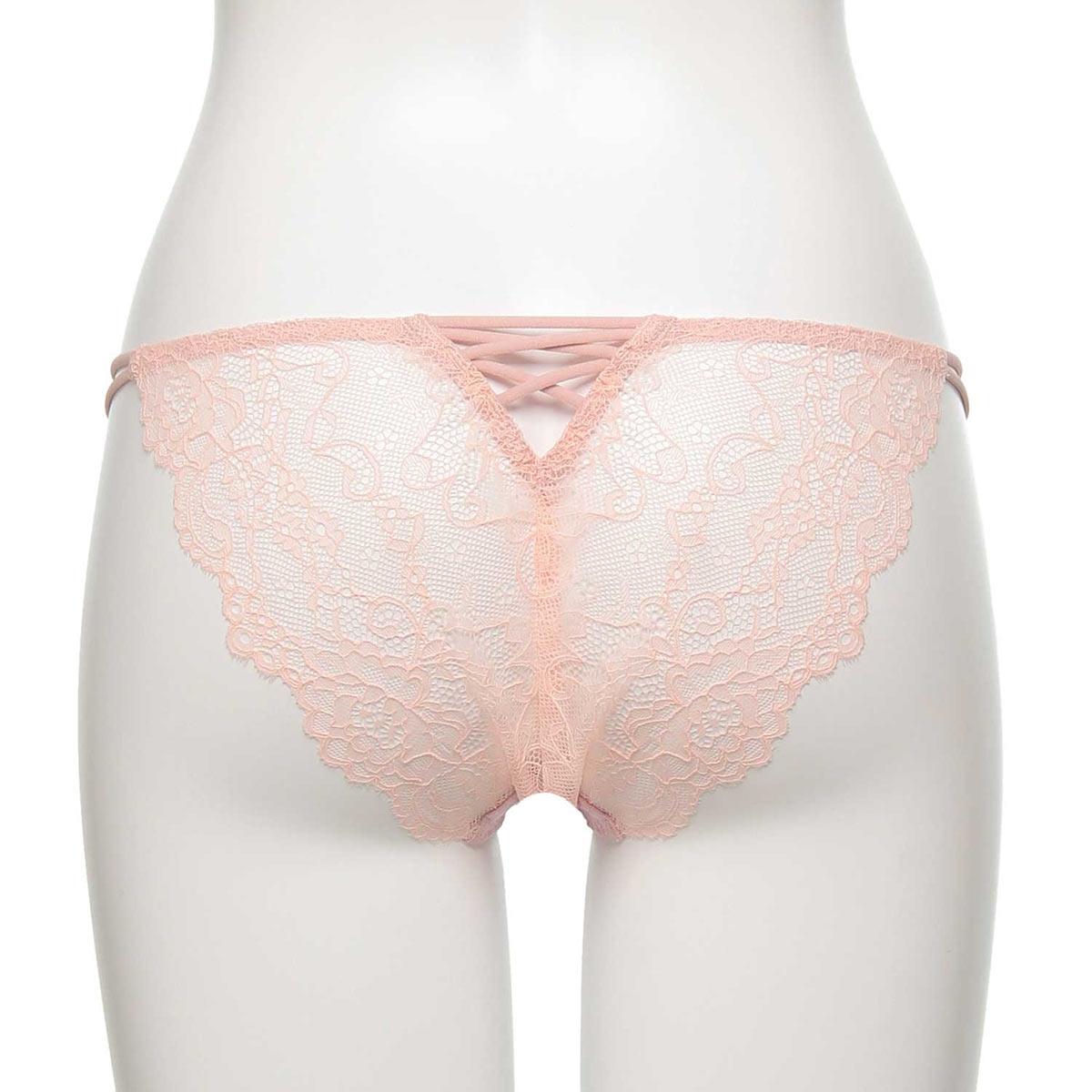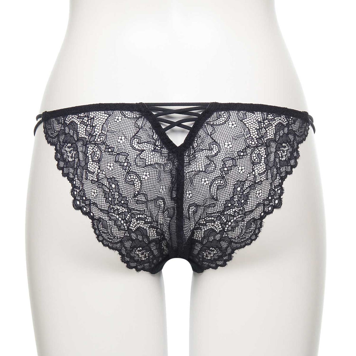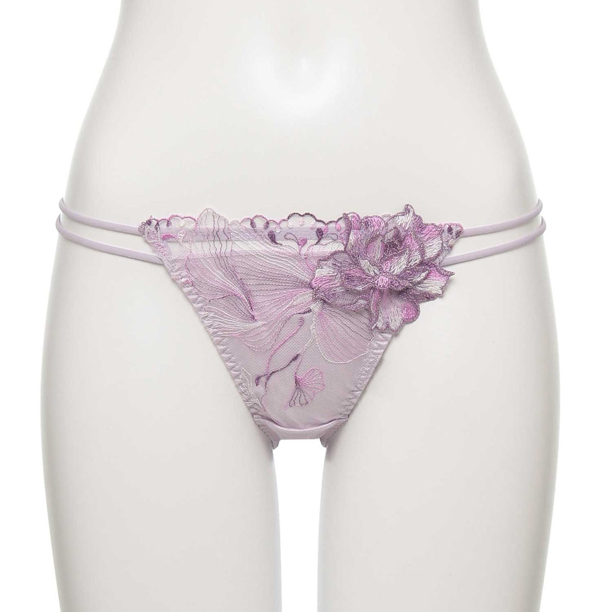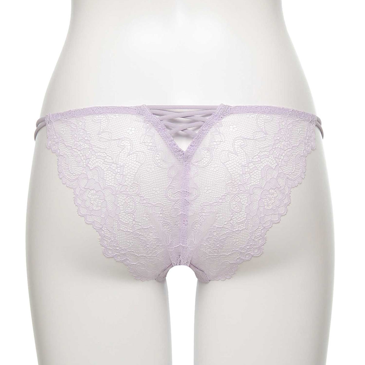 柔らかなストレッチレースが心地良く身体にフィットするノーマルショーツ。ウエストを渡る2本のストリングコードがセンシュアルなデザインです。