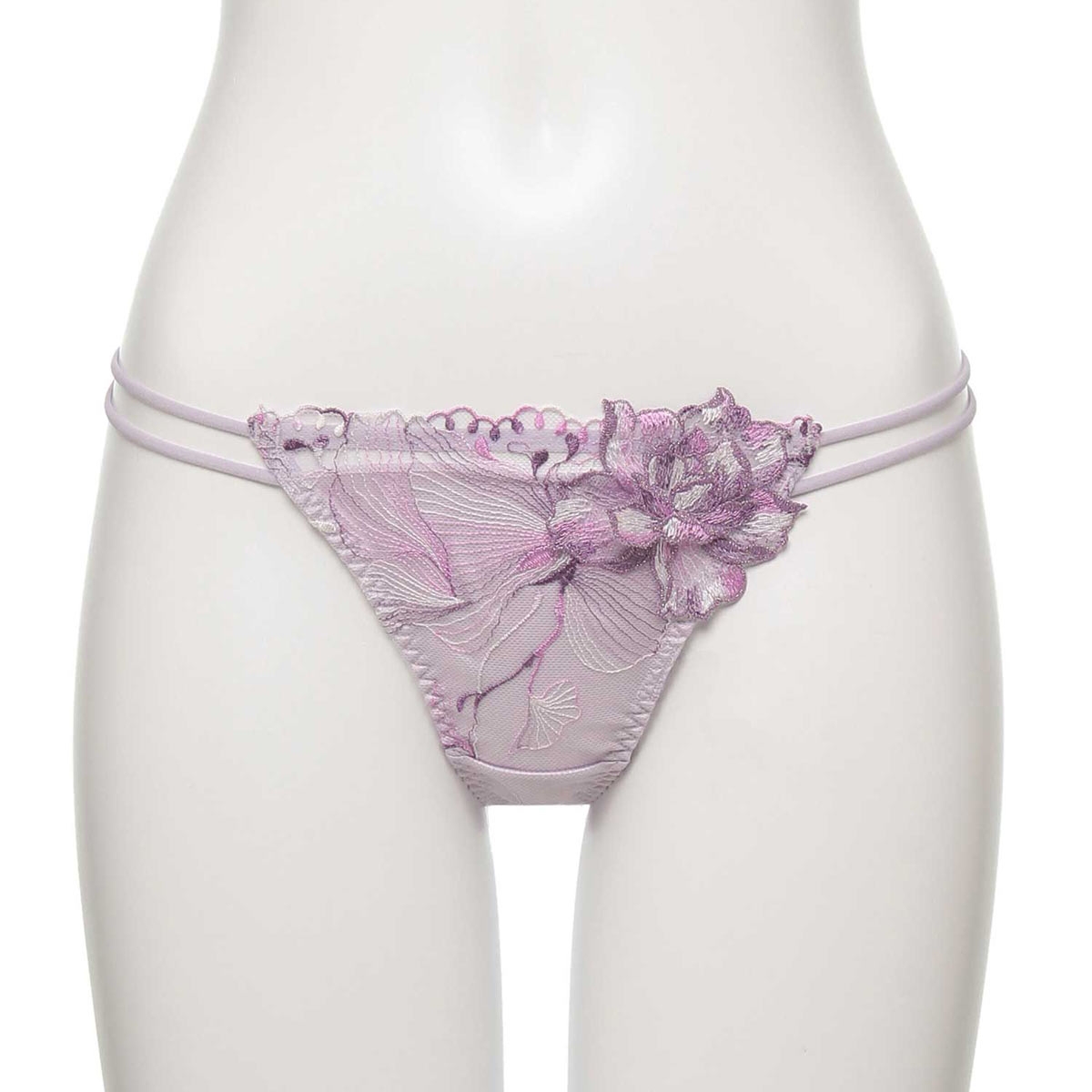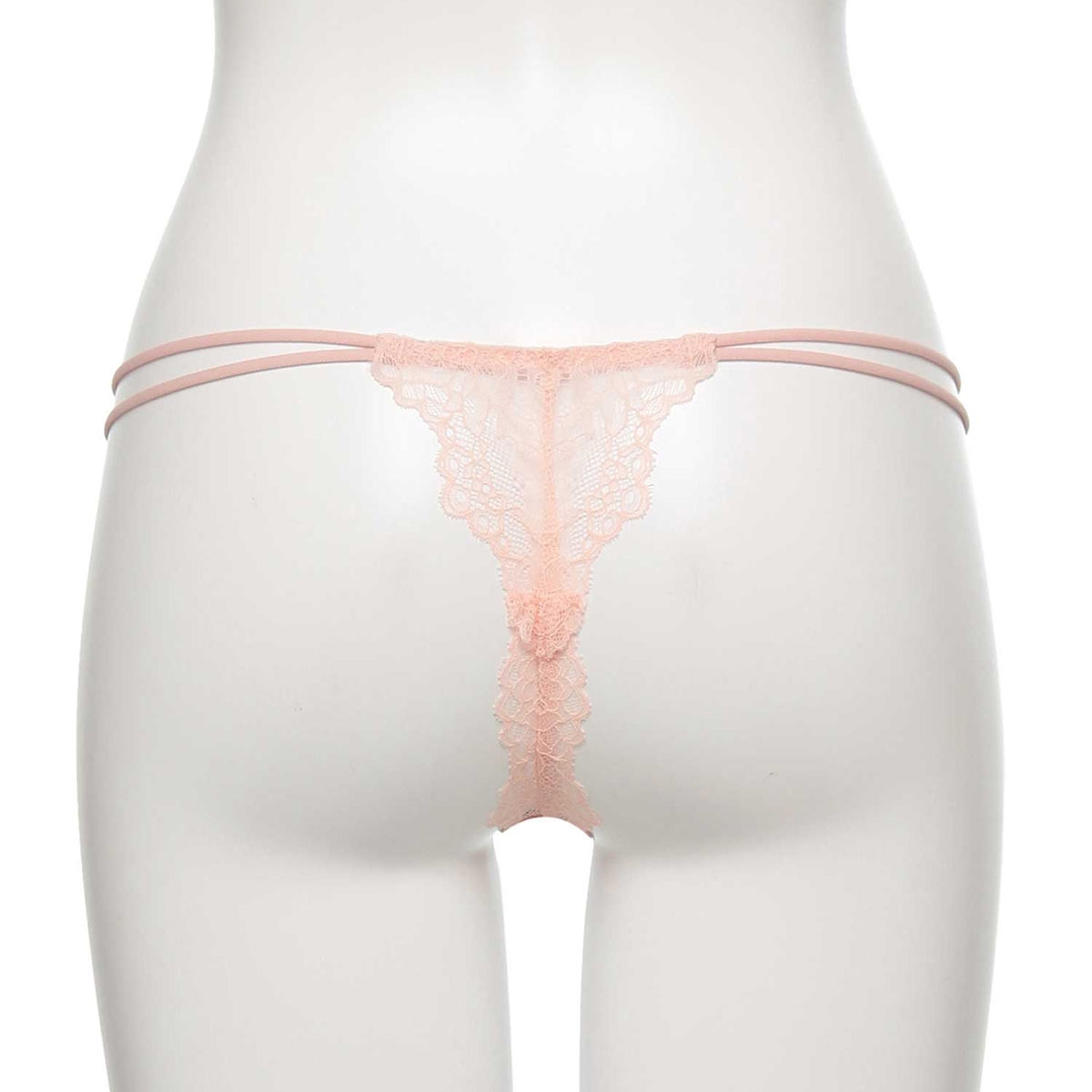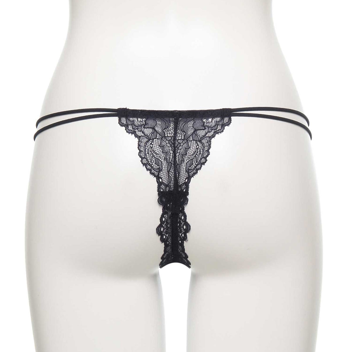 柔らかなストレッチレースが心地良く身体にフィットするTバックショーツ。ウエストを渡る2本のストリングコードがセンシュアルなデザインです。