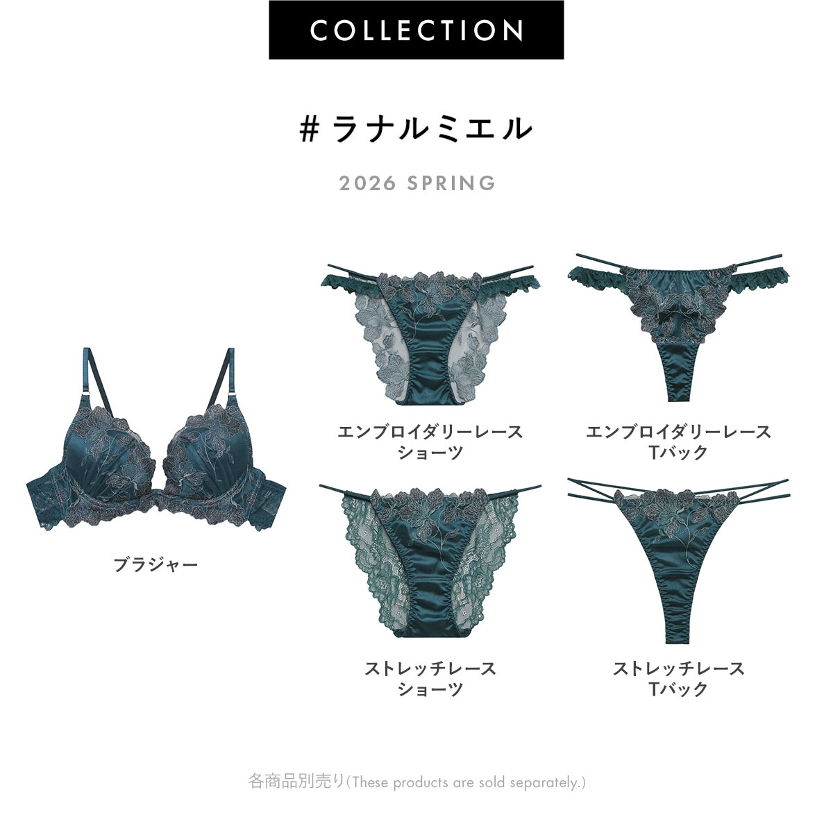 咲き誇るフラワーレースに、散りばめたラメ柔らかく輝く【ラナルミエル】。肌に溶けるような艶感が上品な色香を感じさせるコレクションです。