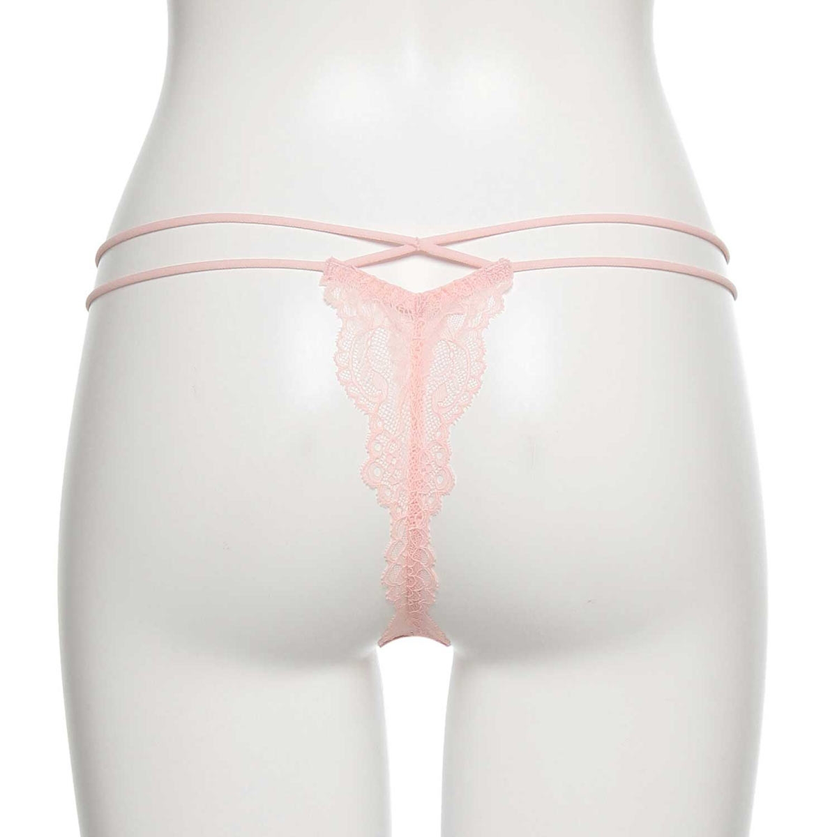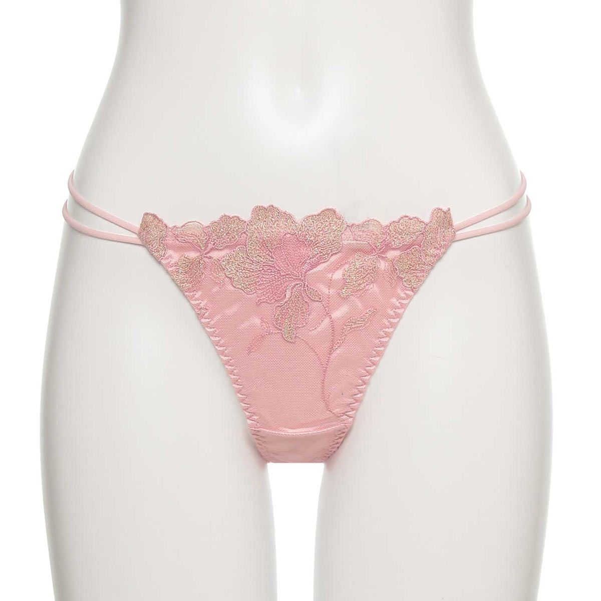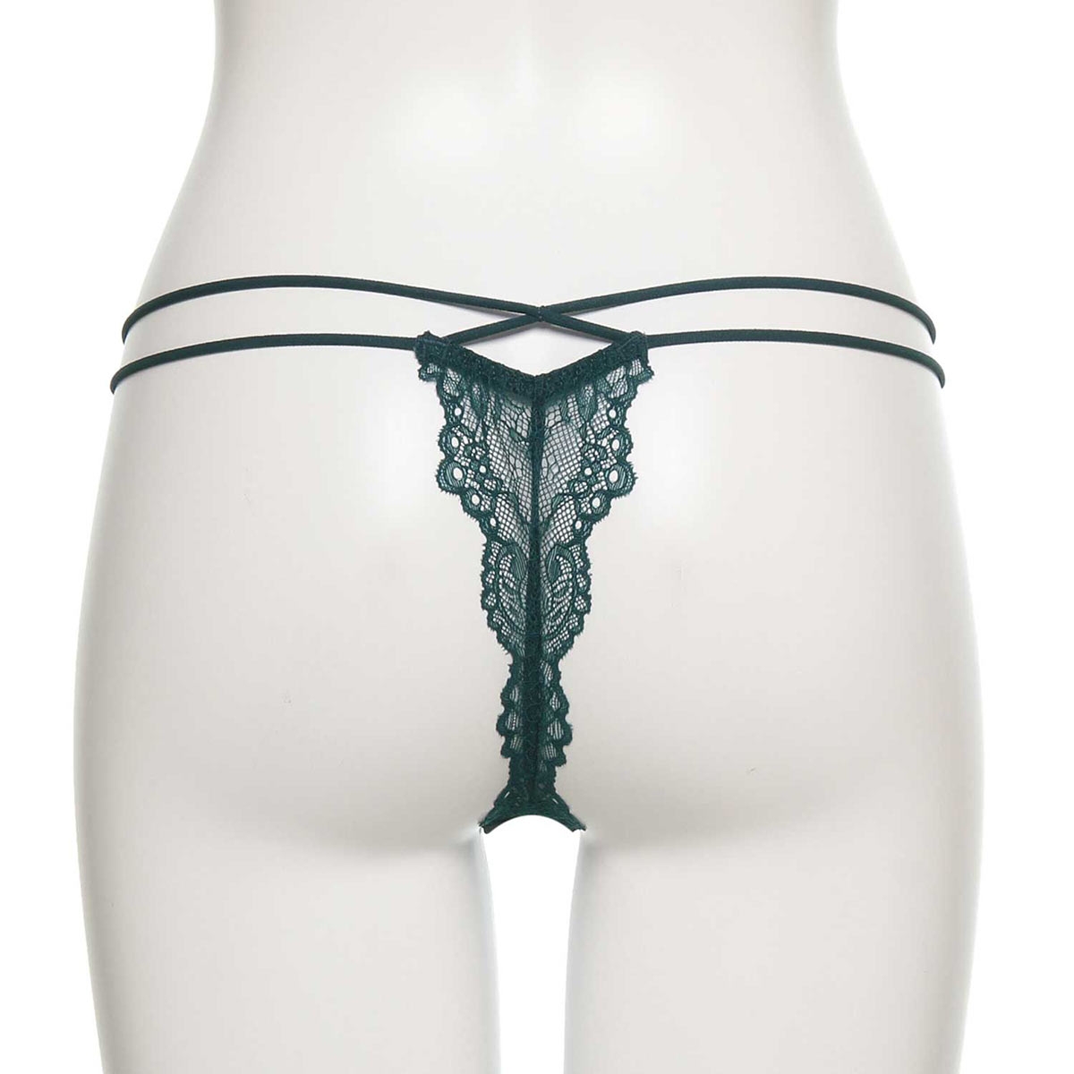上品な色香を漂わせるTバックショーツ。バックは伸縮性のあるストレッチレースで、心地よく身体にフィットします。サイドのストリングコードが、すっきりとしたセクシーラインを演出。フロントはサテンにレースを重ねた透けない仕様です。