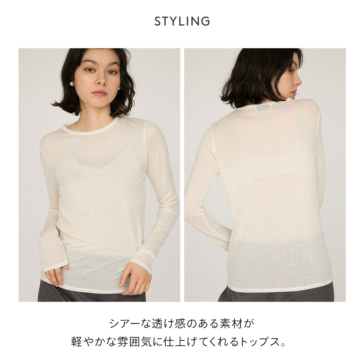 シアーな透け感のある素材が軽やかな雰囲気に仕上げてくれるトップス。