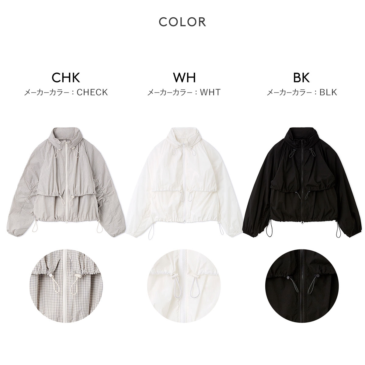 カラーCHK-チェック、WH-ホワイト、BK-ブラック
