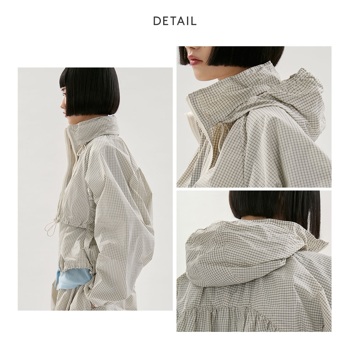 いずれのカラーも、袖にはギャザーを入れて、動きやすさとシルエットのアクセントを両立。ダブルジップ仕様なので温度調整やスタイリングの幅も広がります。フードは衿にスマートに収納可能。ワークアウト後の羽織りや、街中での軽快なスタイルにもフィットする、機能性とデザイン性を兼ね備えた1枚です。