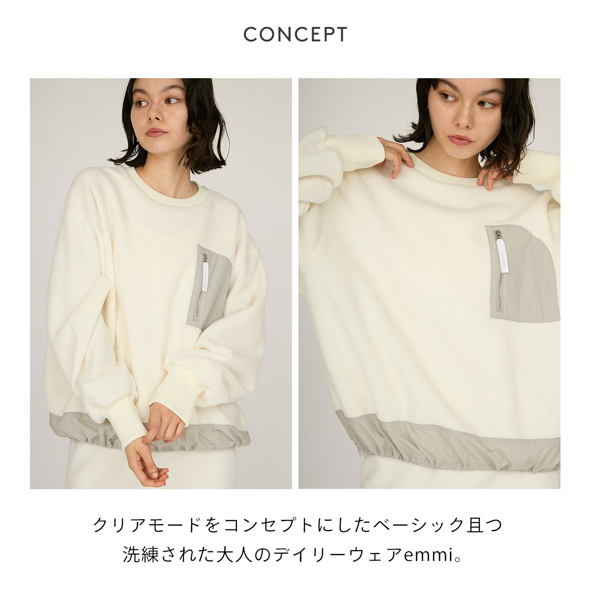 ポケットのジップ引手に、emmiロゴプリントがさりげなく施されているのも注目ポイント。