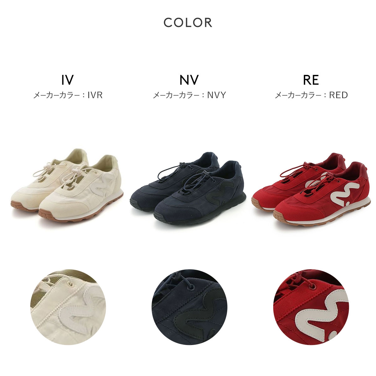 カラーIV-アイボリー、NV-ネイビー、RE-レッド