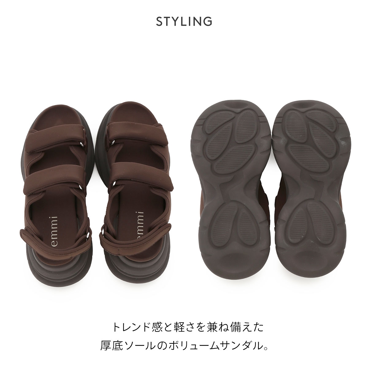 emmi★トレンド感と軽さを兼ね備えた厚底ソールサンダル