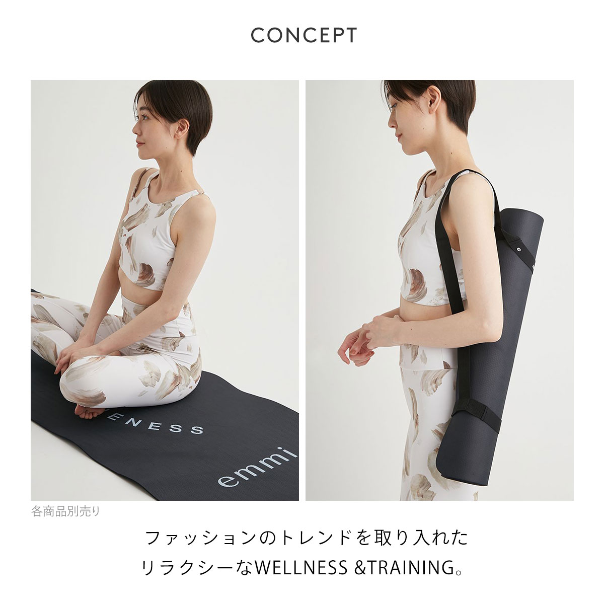サステナブルなTPE素材を使用した軽量ヨガマット。