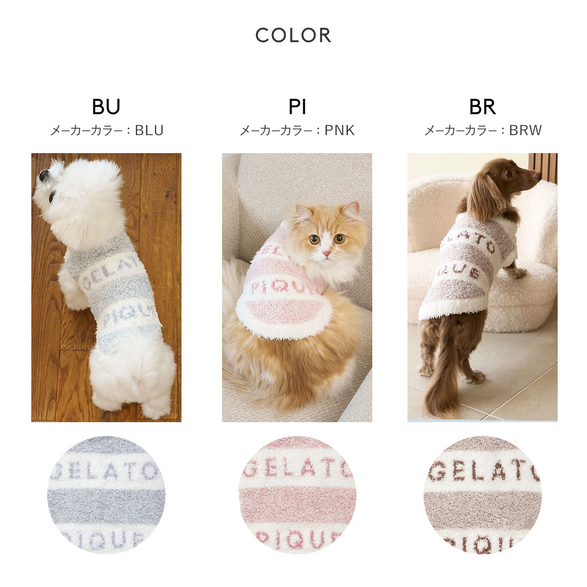ニュアンスのあるメランジカラーのボーダー柄に、大きなロゴジャガードをプラスした、ペット用プルオーバー。