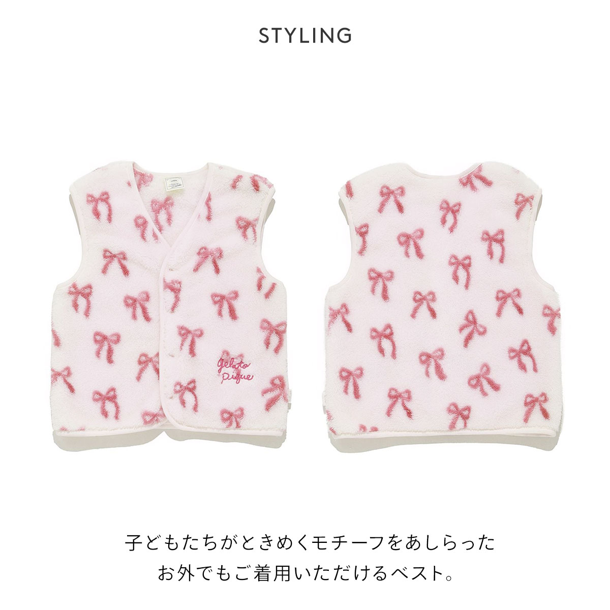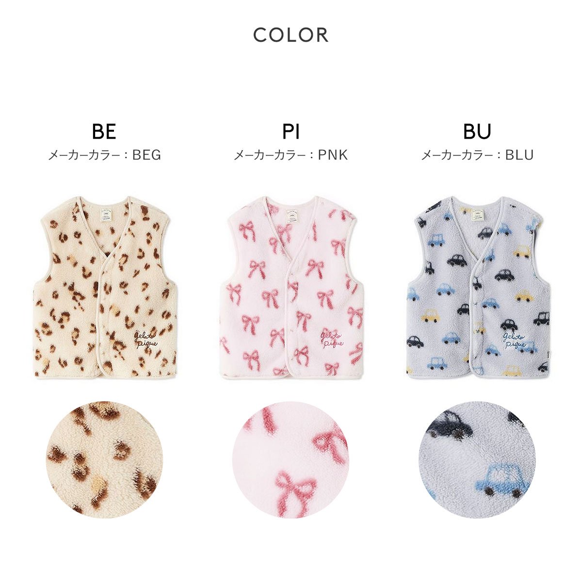 ジェラートピケ★3柄から選べるキッズ用フリース素材ベスト