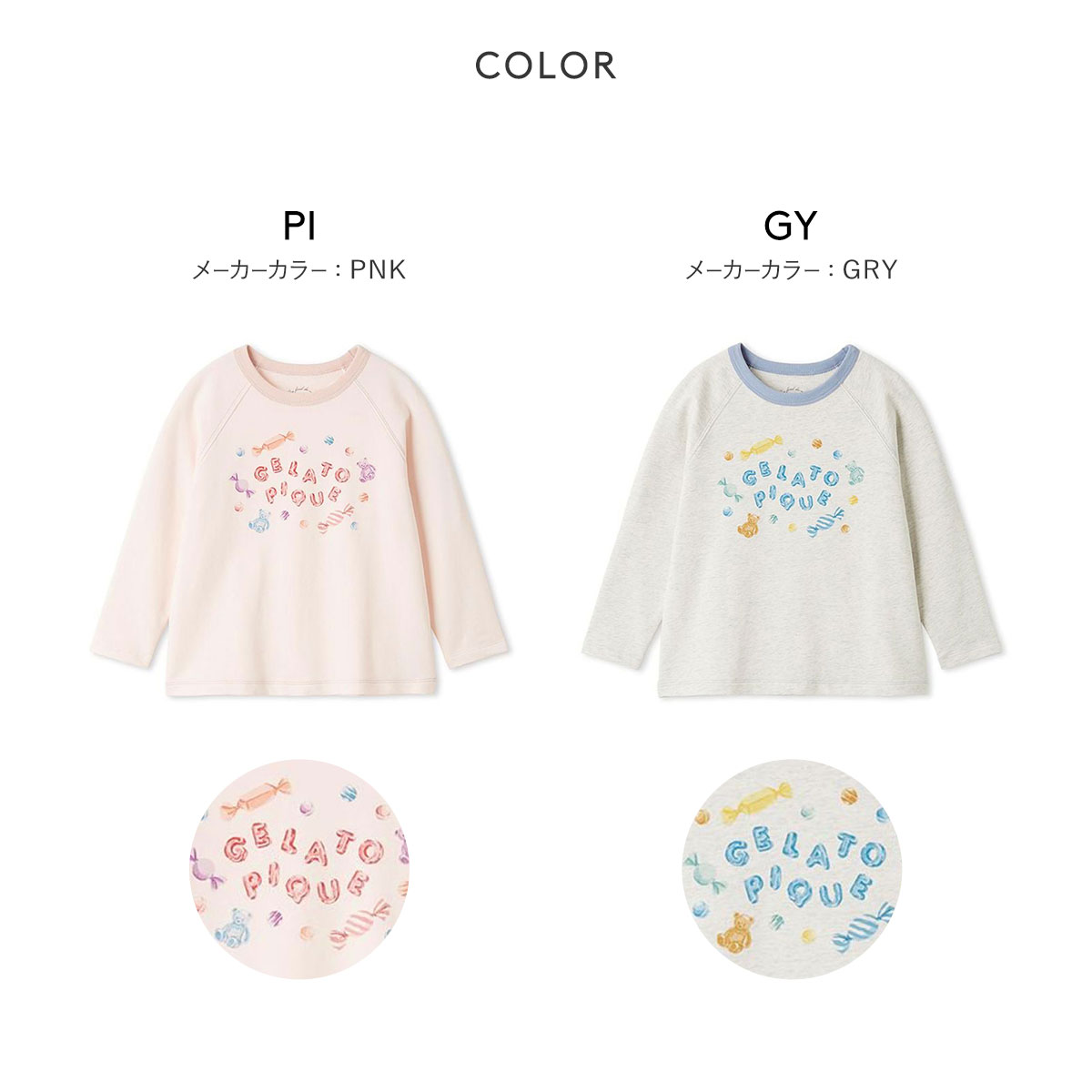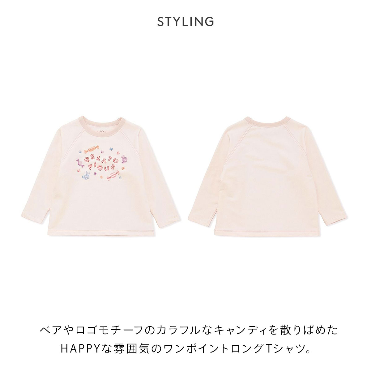 gelato piqueらしいベアやロゴモチーフのカラフルなキャンディを散りばめた、HAPPYな雰囲気のキッズ用ワンポイントロングTシャツ。