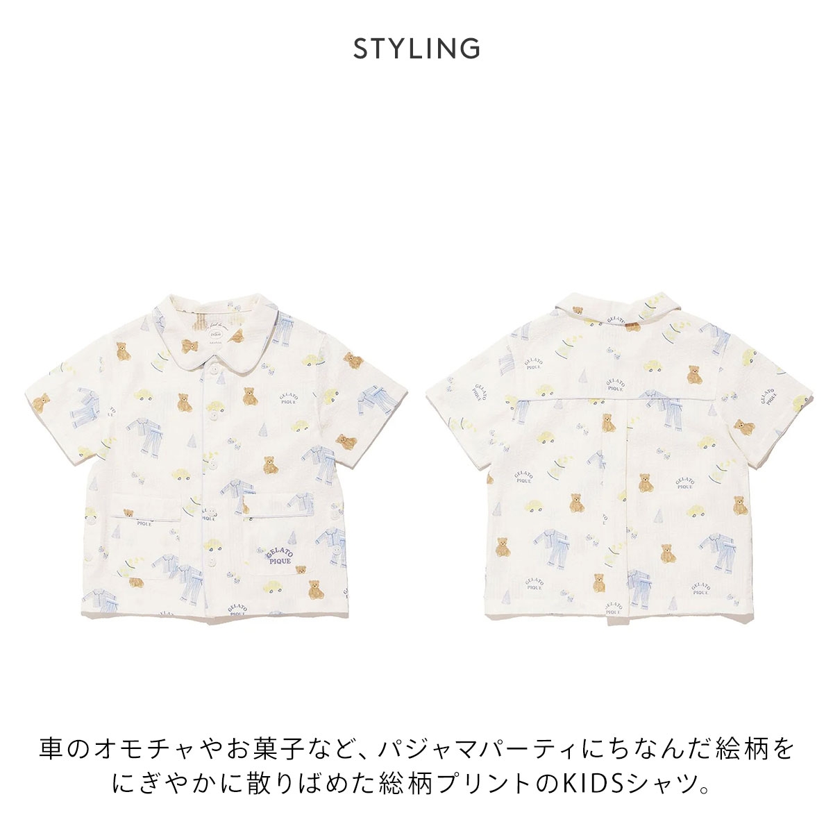 ジェラートピケ★楽しいパジャマパーティーを描いたキッズシャツ
